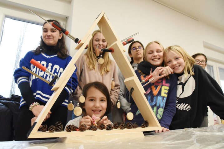 Ta je radionica istovremeno služila kako bi ih potakla na zanimanje za poslove unutar drvoprerađivačke industrije. Djeca su u sklopu ove radionice radili drvenu novogodišnju jelu koju smo, isto tako, ukrasili produktima drva – drvenim nakitom.