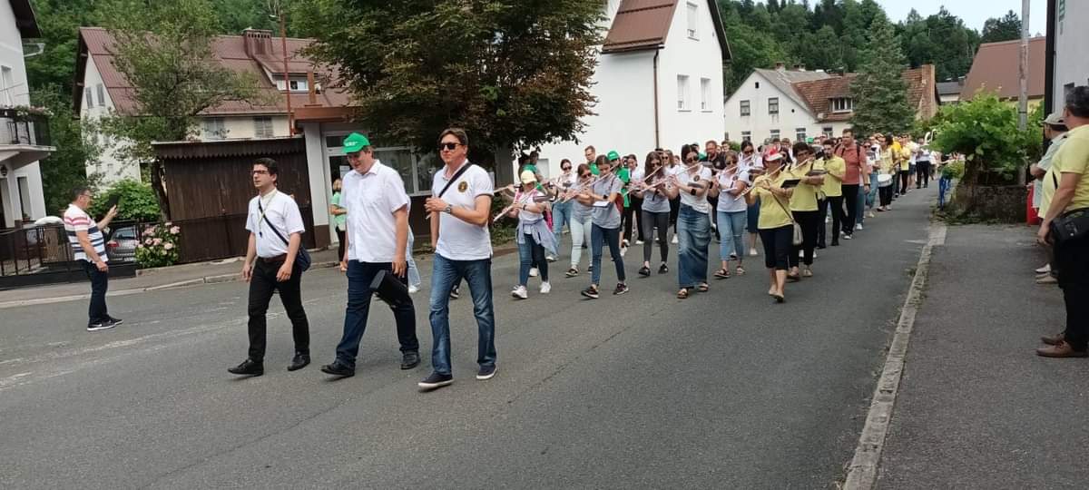 Nastupu goranskih glazbenika prethodio je defile tijekom kojeg su svi sudionici prošetali od pogona tvrtke IMP do sportskog igrališta izvodeći pri tom zajedno tri skladbe – “San Carlo”, “Kroz gradski park” i “Dolenjska”.