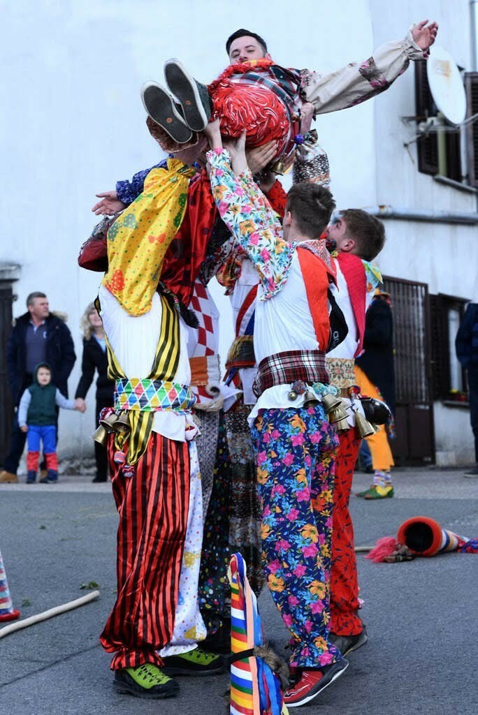 Pesniki su tradicija duga vjerojatno više od dva i pol stoljeća, a u naravi to su mladići odjeveni u šarena odijela, po načelu što šarenija to bolja, posljednjih desetljeća isključivo još neoženjeni, ranije i vjenčani muškarci, koji na glavama imaju također šarene stožaste kape, a na licima zastrašujuće, animalne maske, na lokalnom dijalektu »krabule«, u rukama drvene štapove, a na leđima bučne zvonce, za karneval posuđene od kravica iz kućnih štala.