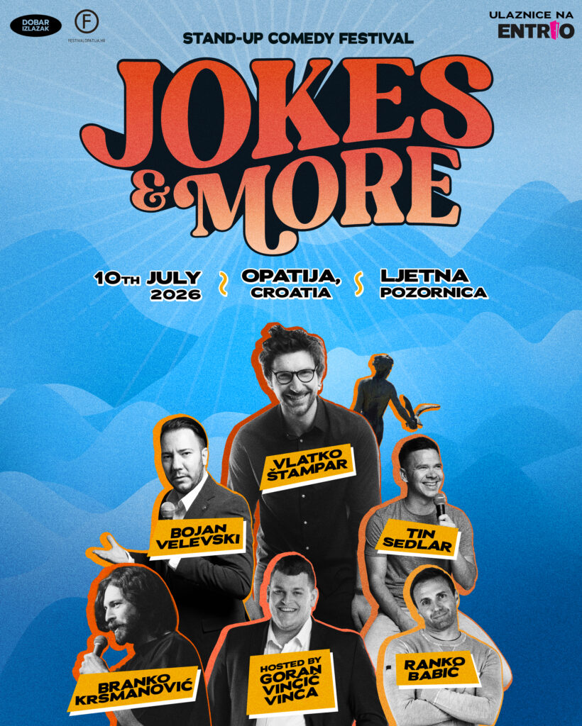 Nadolazeće opatijsko ljeto smijehom će razvedriti Jokes&More Festival. 10. srpnja na opatijsku pozornicu izaći će vješti i poznati komičari iz Hrvatske i inozemstva te u cjelovečernjem događaju izazvati trbobolju izazvanu svojim komičarskim repertoarom.