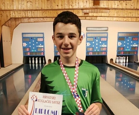 DELNICE – Karlo Beljan, mladi kuglač delničkog “Goranina” odličnim je nastupom na u Zagrebu održanom prvenstvu Hrvatske za mlađe juniore U15 u kategoriji Sprint osvojio srebrnu medalju stekavši time status viceprvaka Hrvatske u tom uzrastu i toj kategoriji natjecanja. Ukupno je bilo prijavljeno 40 kuglača, a Kuglački klub Goranin nastupio je sa petero kuglača pri čemu su plasman u osminu finala osigurali Karlo Beljan osvojivši deveto mjesto i srušivši 165 čunjeva te Patrik Čmelik koji je sa 160 srušenih čunjeva zauzeo četrnaesto mjesto.
