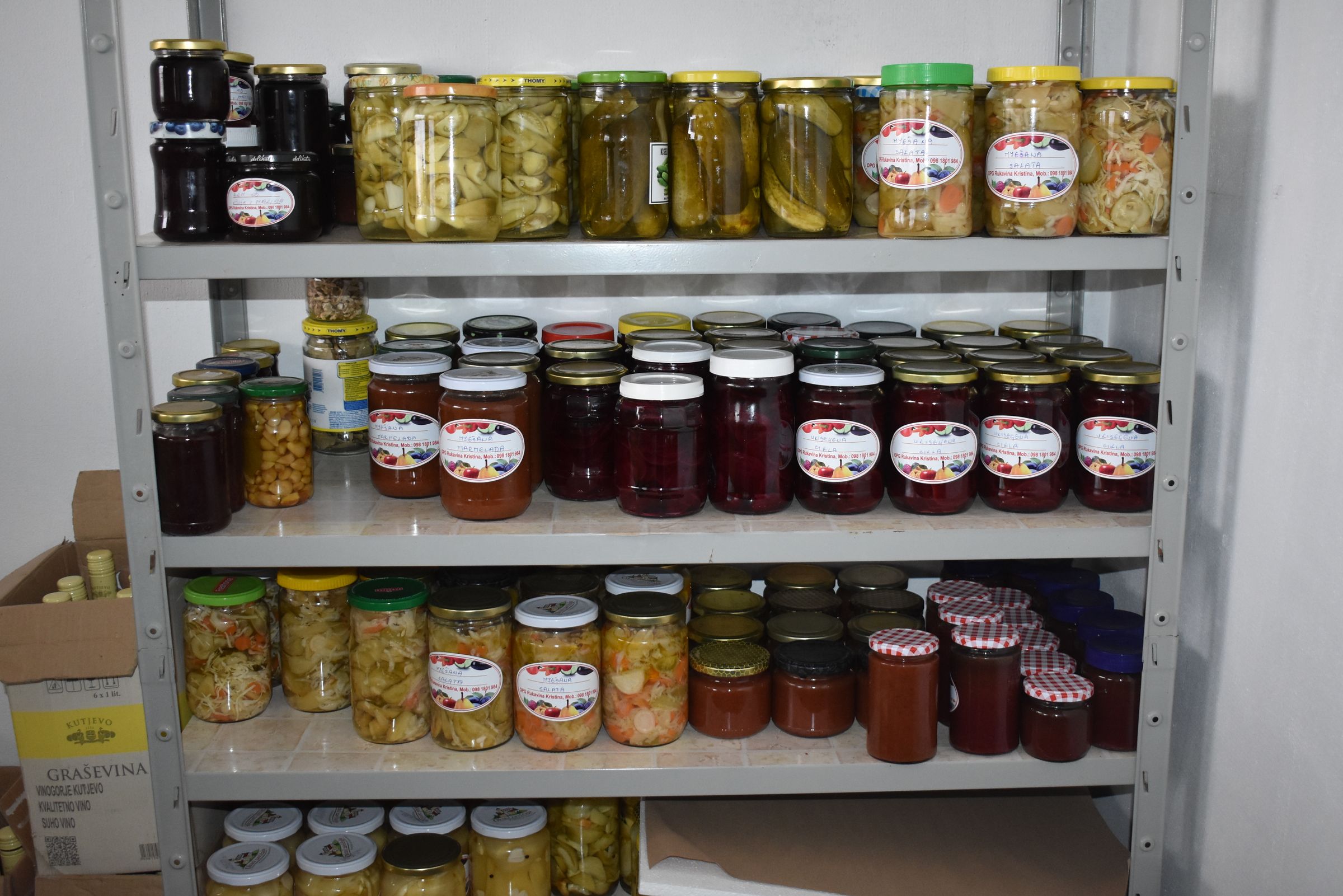 Posvuda se suše češnjak, luk, feferoni, grah i ostalo povrće. A na policama raj za gurmane spremljen u teglama: ukiseljeni krastavci, rajčica, mahunaste biljne vrste, paprika, miješane salate, cikla, pekmezi i dodaci jelima.
