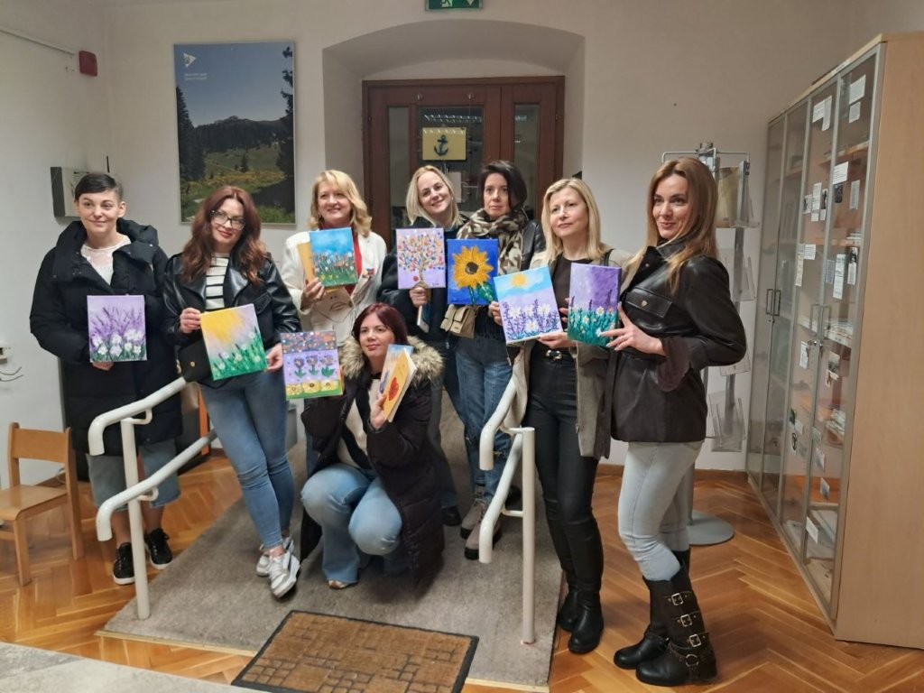 Polaznice su uživale u afirmativnim stihovima Mare Majstorović koja je okupljenima predstavila svoju novu zbirku poezije „Srce bez okova“, sudionice radionice su se opustile uz čašu vina, a nakon toga prepustile se nadahnuću i mašti te stvorile lijepe likovne radove.