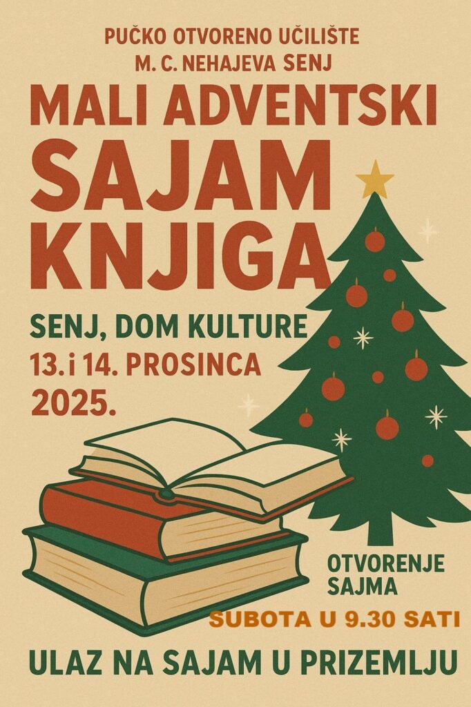 SENJ Pučko otvoreno učilište M.C. Nehajeva Senj ovaj će vikend 13. i 14. prosinca po prvi puta organizirati Mali adventski sajam knjiga.