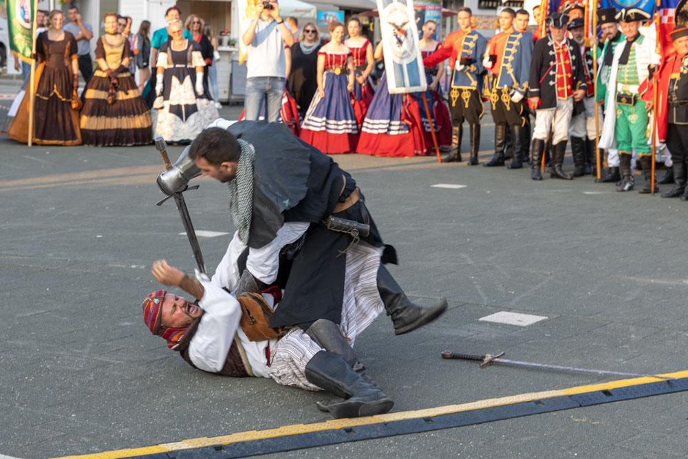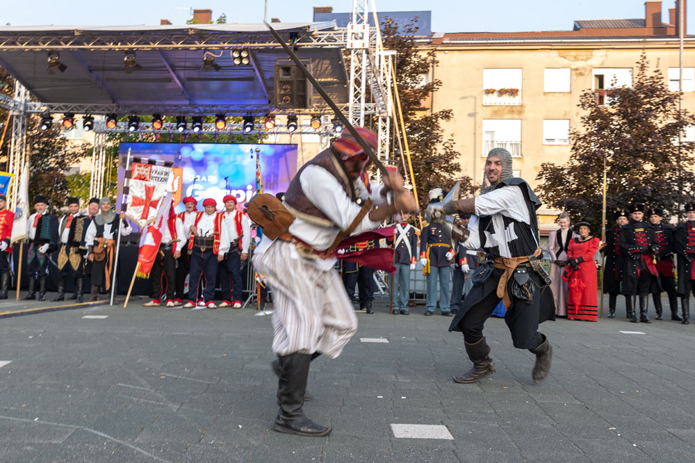 U okupljenom šarenilu teško je bilo izdvojiti neku postrojbu, dok su svojim nastupom drevnu hrvatsku povijest ilustrirali srednjovjekovni vitezovi u borbi s Turcima. Cijeli je program moderirao popularni voditelj Branko Uvodić.