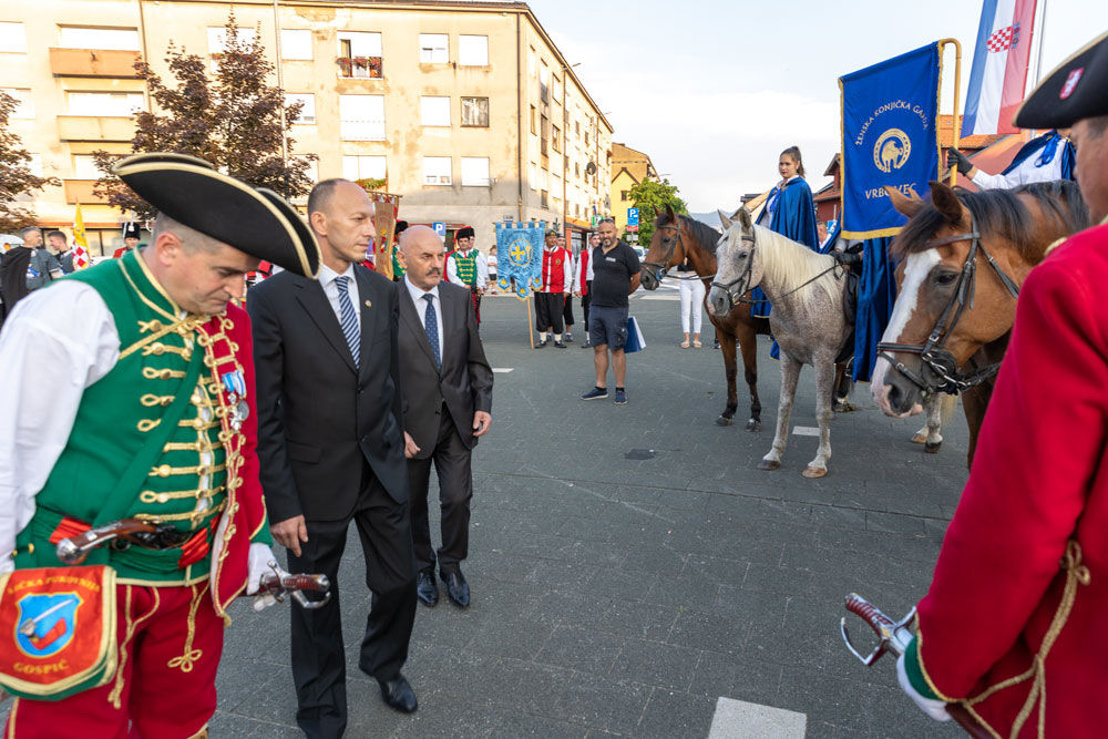 Nakon što su su postrojbe u špaliru postrojile na glavnom trgu župan Ernest Petry i gradonačelnik Grada Gospića Karlo Starčević primili su prijavak kojega je predao predsjednik Ličke pukovnije Joso Vrkljan.