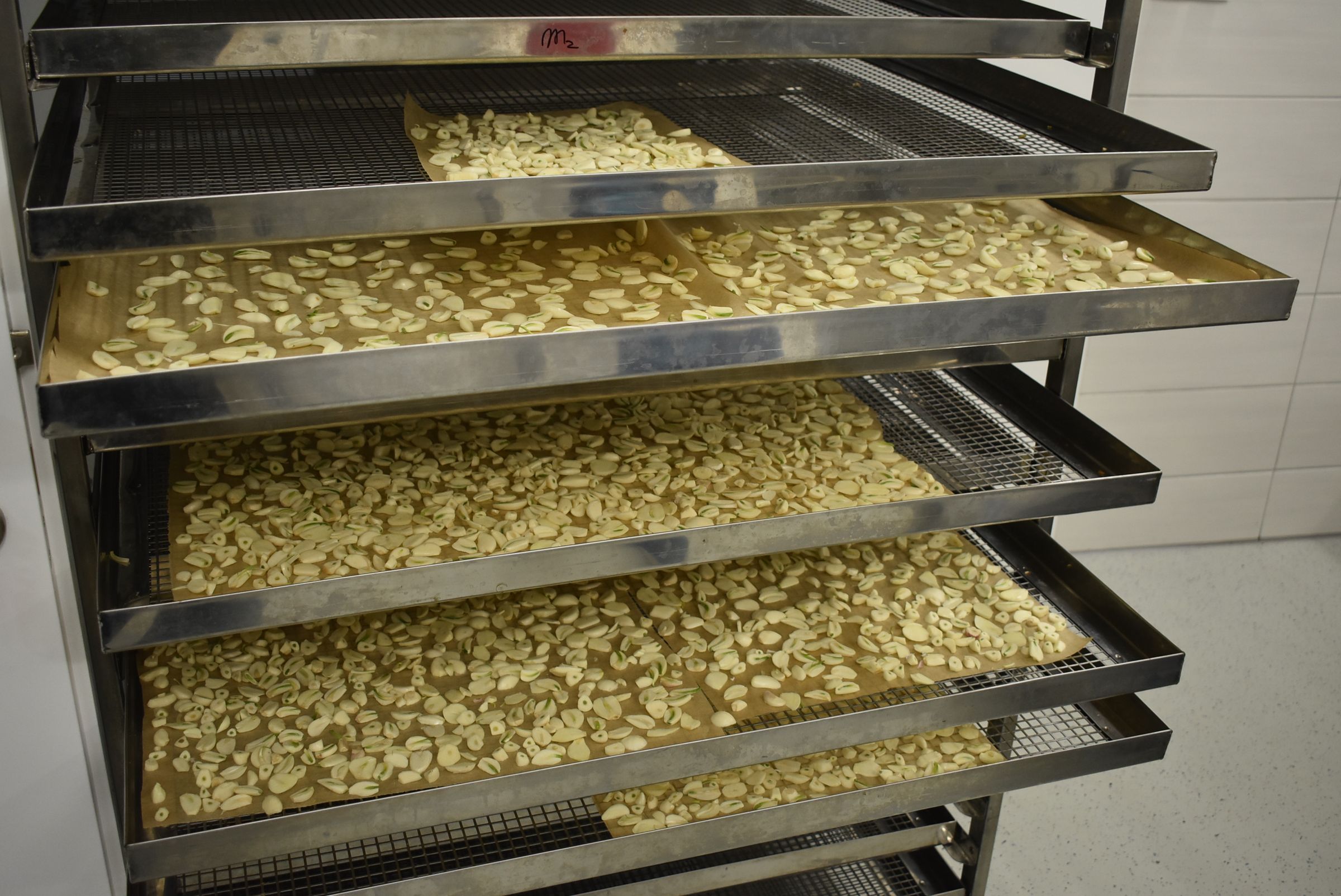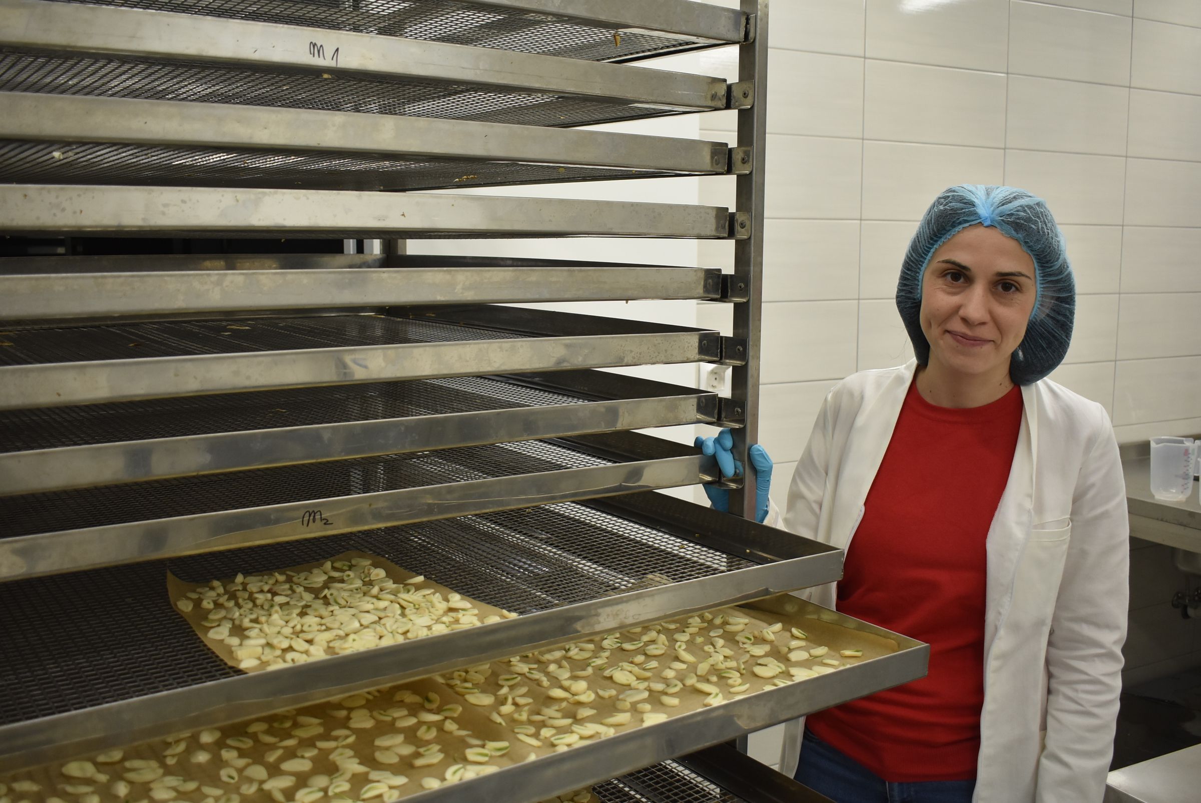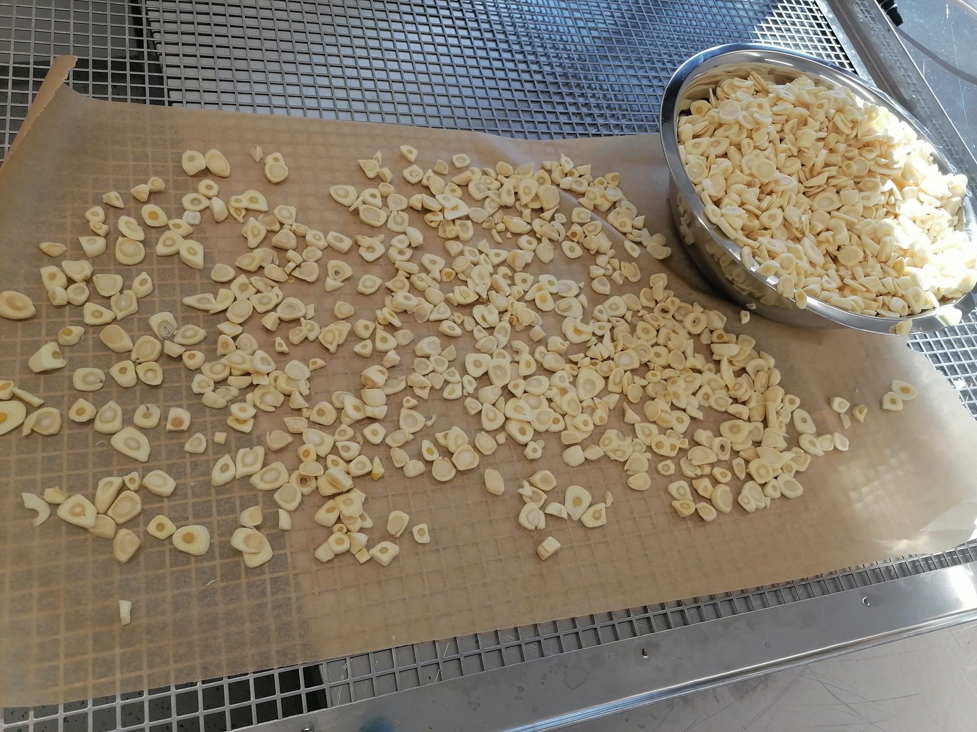 – Prispjeli češnjak najprije se nareže na debljinu od nekoliko milimetara. Sušimo ga u granulama i u konačnici ćemo ga samljeti u prah.