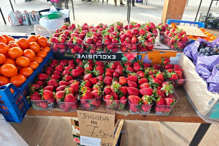 Stigle su i prve jagode s cijenama od 7,5 eura po kilogramu. Pojavile su se i prve trešnje iz zadarskog zaleđa s cijenama od 7 eura, tako da su danas kupci radije kupovali jabike i agrume zbog osjetno nižih cijena.