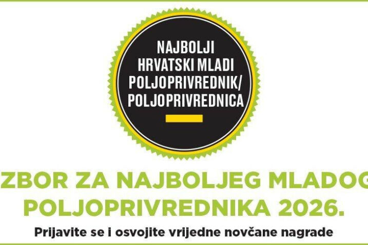 Otvoren je natječaj za 11. izbor najboljeg hrvatskog mladog poljoprivrednika/ce za 2026. godinu, kojim se nastoji prepoznati i promovirati mlade poljoprivrednike koji svojim radom, poduzetništvom i inovacijama doprinose održivom razvoju poljoprivrede te razvoju ruralnih područja.