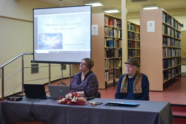 Samostalna narodna knjižnica Gospić nastavila je sinoć manifestacije u sklopu serijala „Noć knjige“ kojom se obilježava Svjetski dan knjige i Dan hrvatske knjige. Tim je povodom držana večer poezije hrvatskog barda Tina Ujevića pod naslovom „Pobratimstvo lica u sveMIRu“.