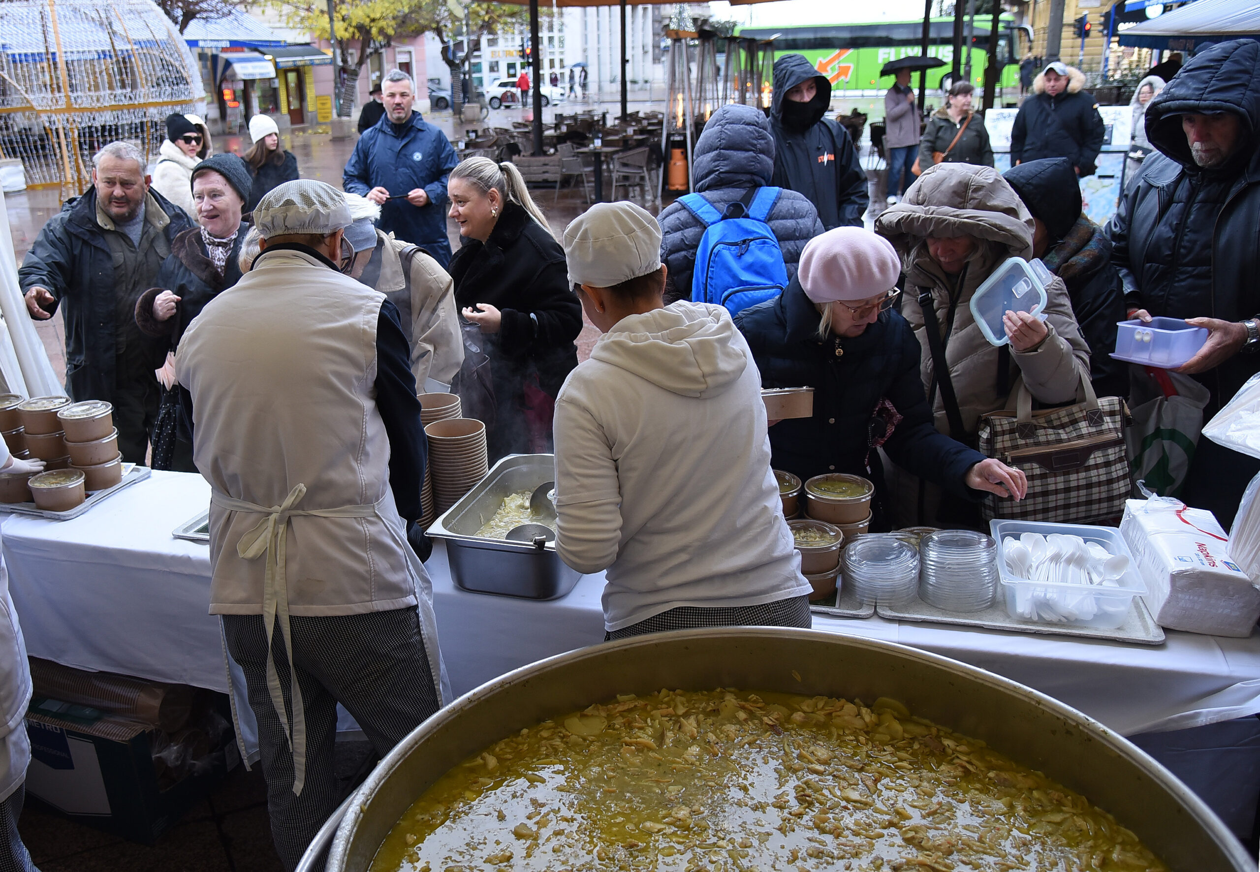 Ovo je bakalar kakav se ne može tako lako napraviti doma pa su mnogi izašli s posla na blagdansku marendu, ali kao i svake godine, najviše je u redovima bilo umirovljenika koji su dolazili s padelicama za doma. Prizor je to kojem svjedočimo svaki put kada se dijeli hrana, a u blagdansko vrijeme treba se zapitati može li par porcija bakalara nekom ‘penziću’ s malom mirovinom zaista uljepšati Badnjak.