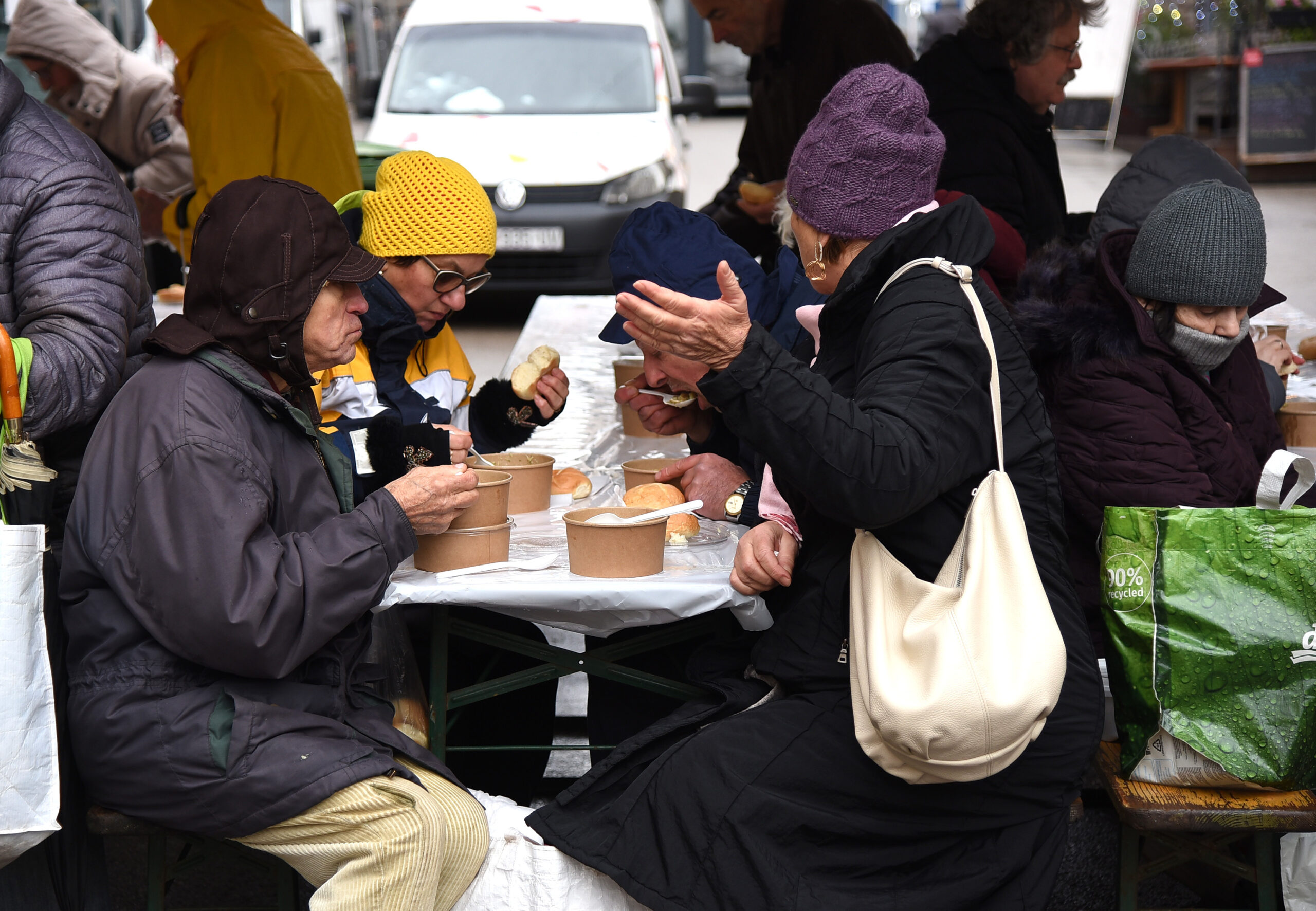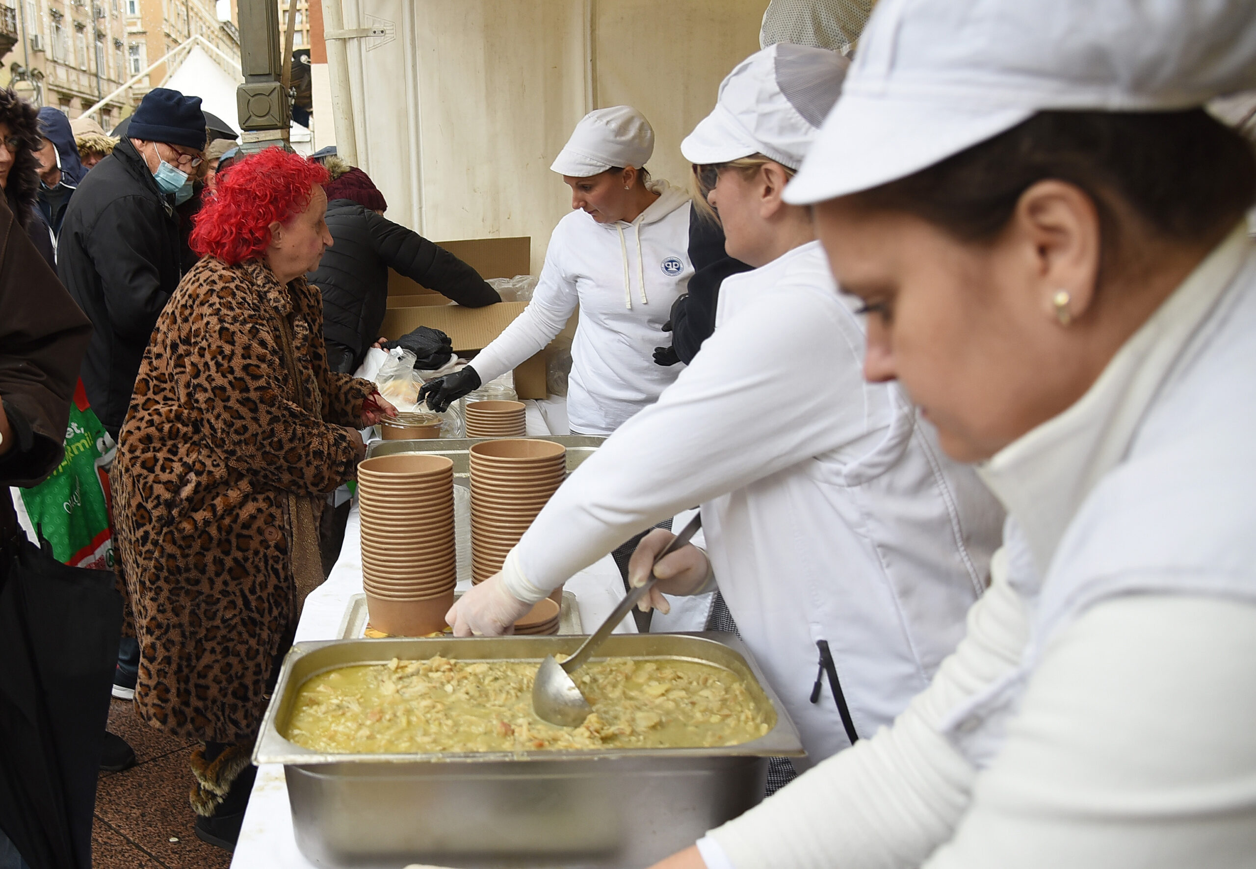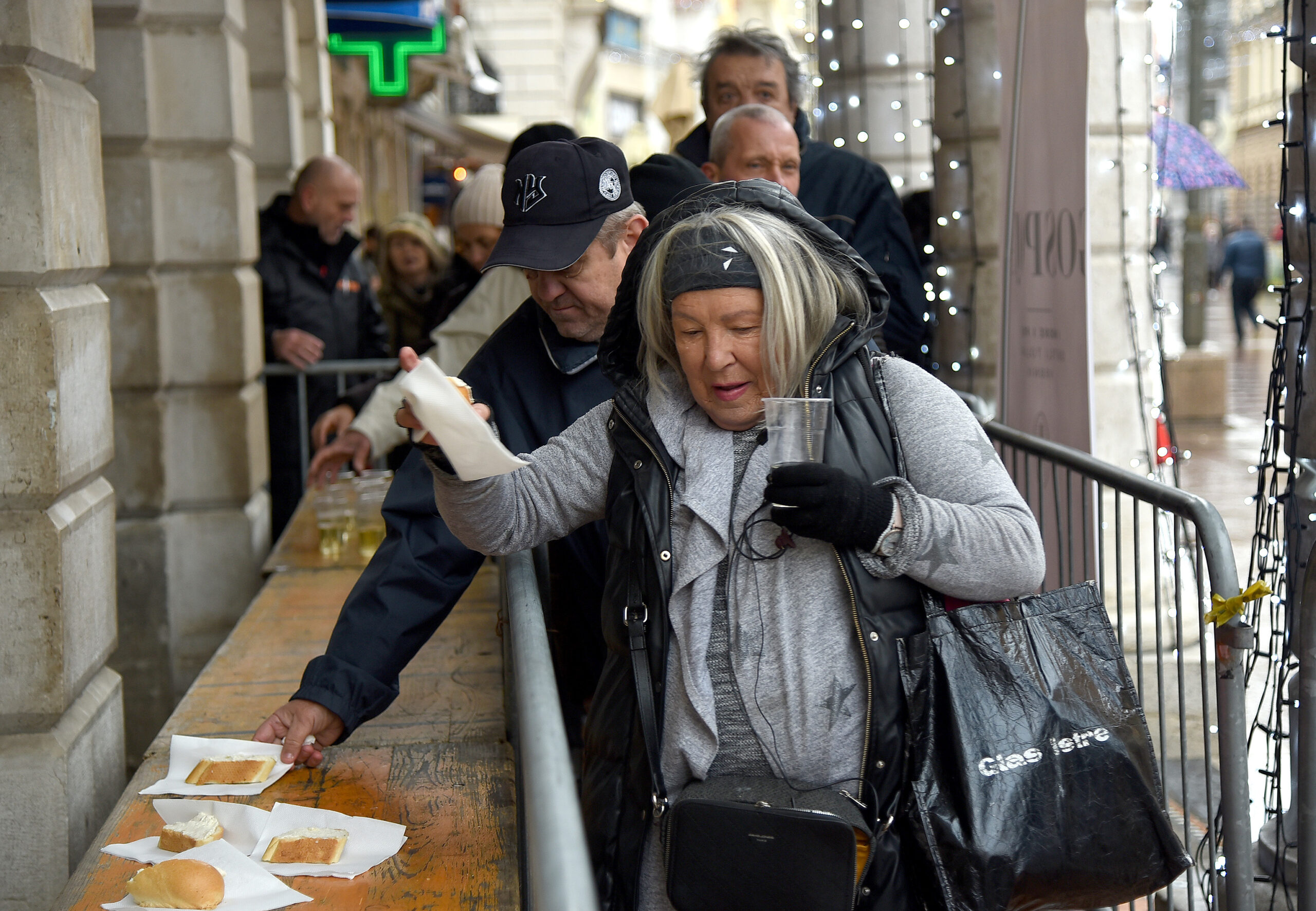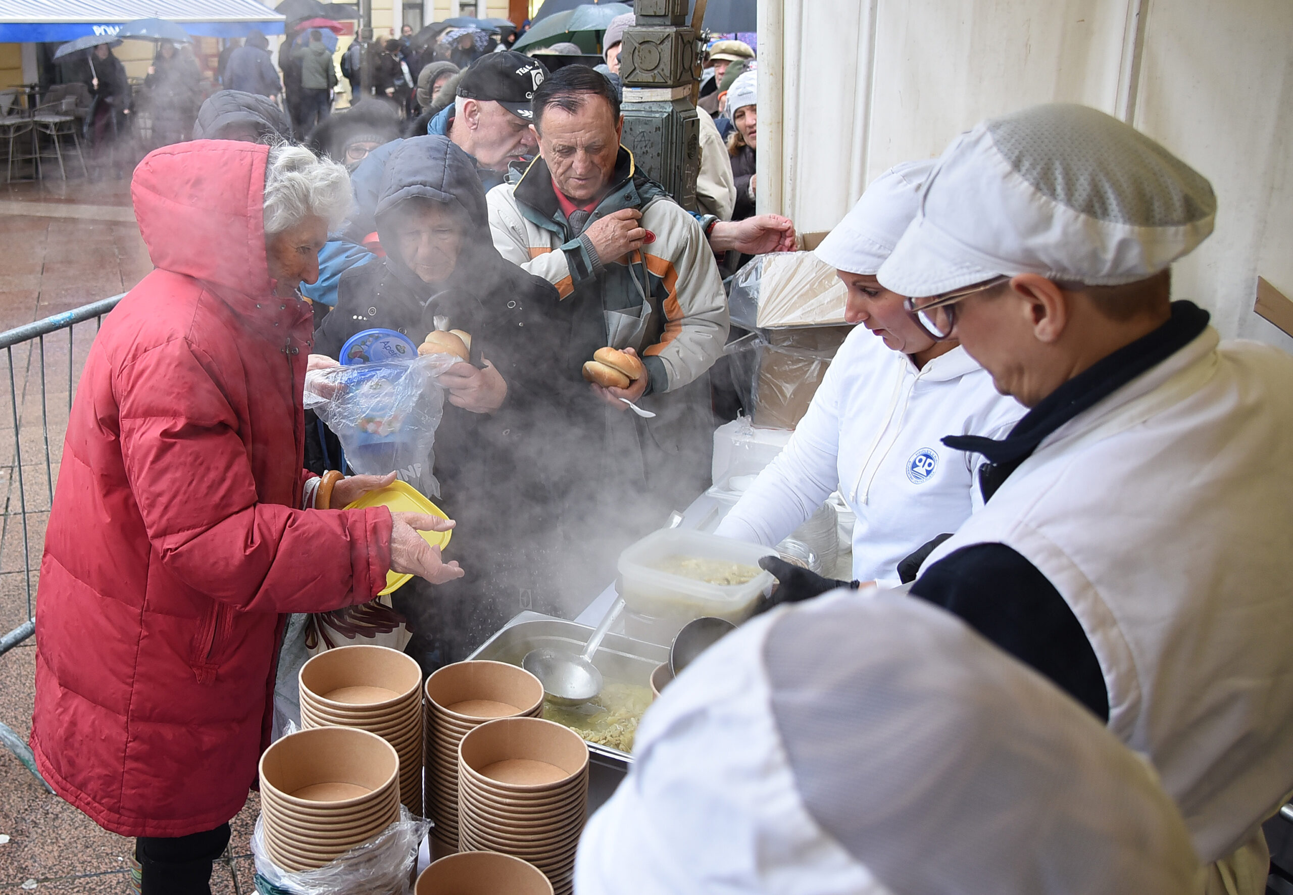 Dugački red željnih bakalara nije se smanjivao sve dok nije podijeljeno tri tisuće porcija gulaša, tri tisuće kanape sendviča i isto toliko čaša vina.
