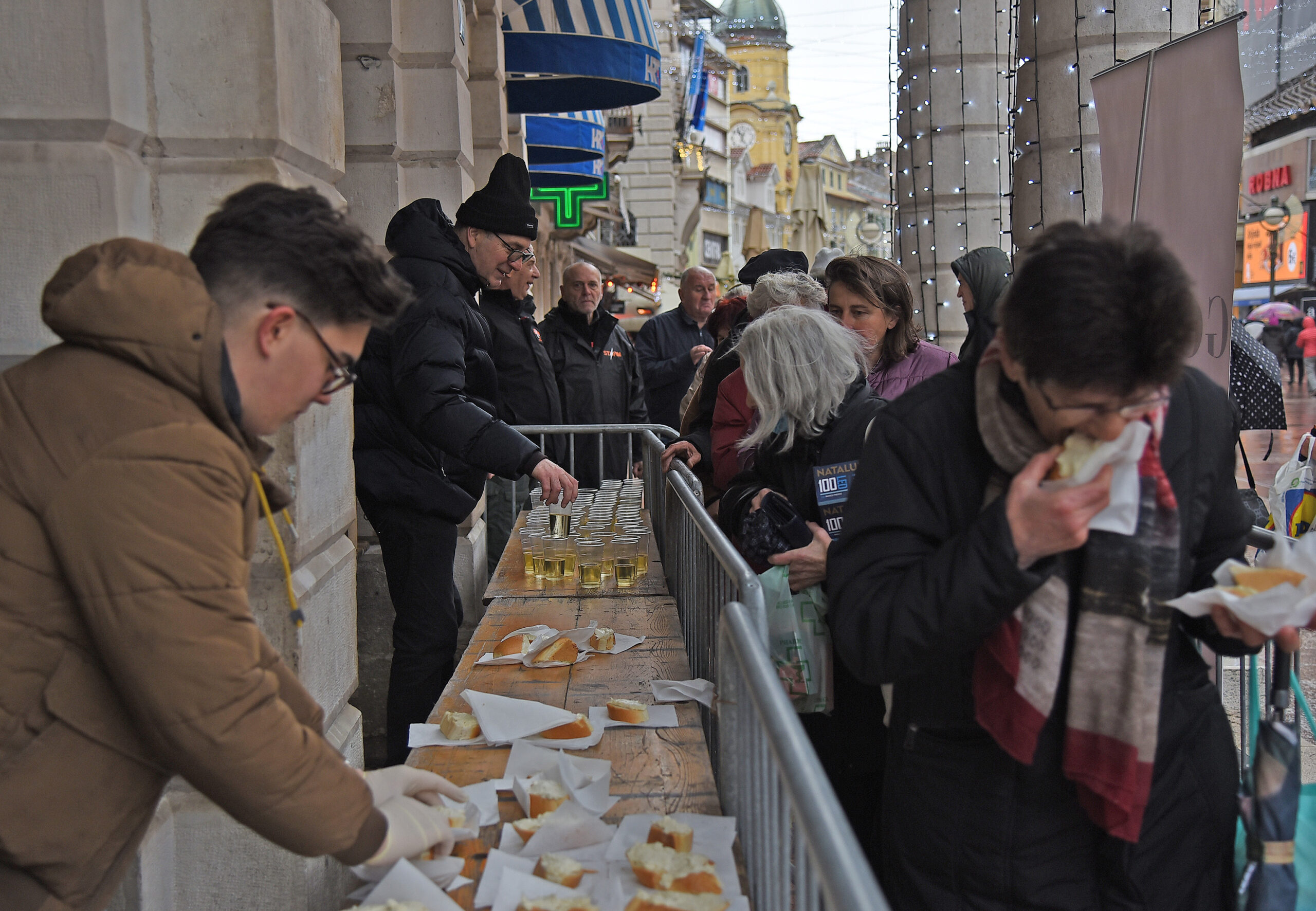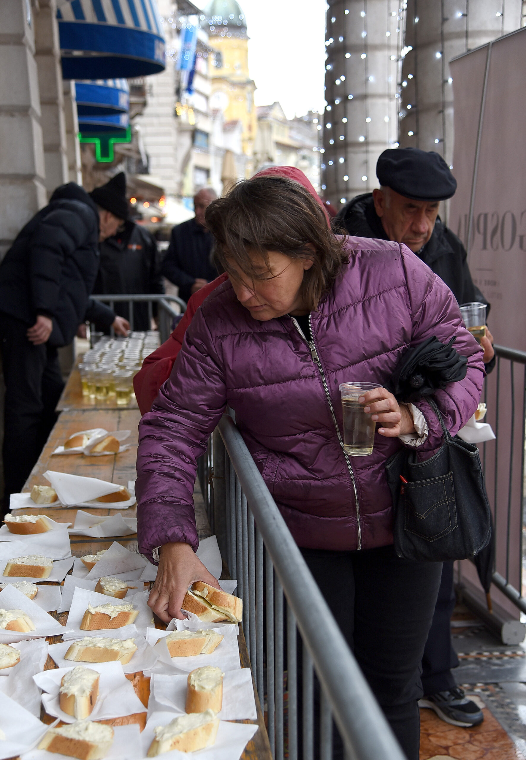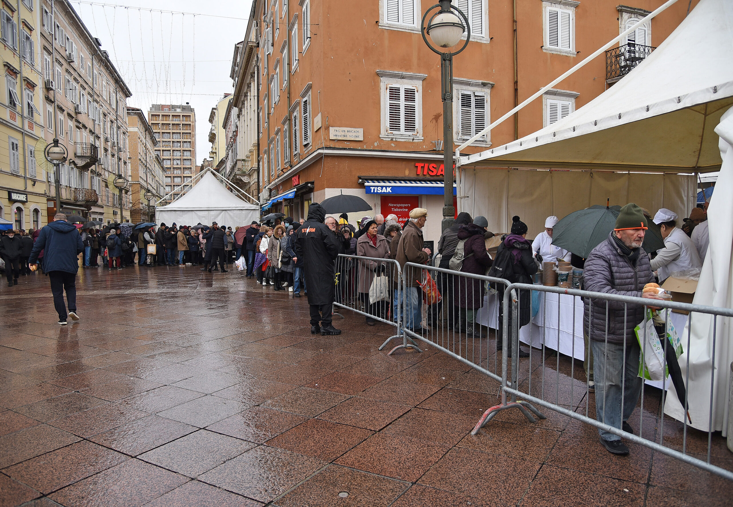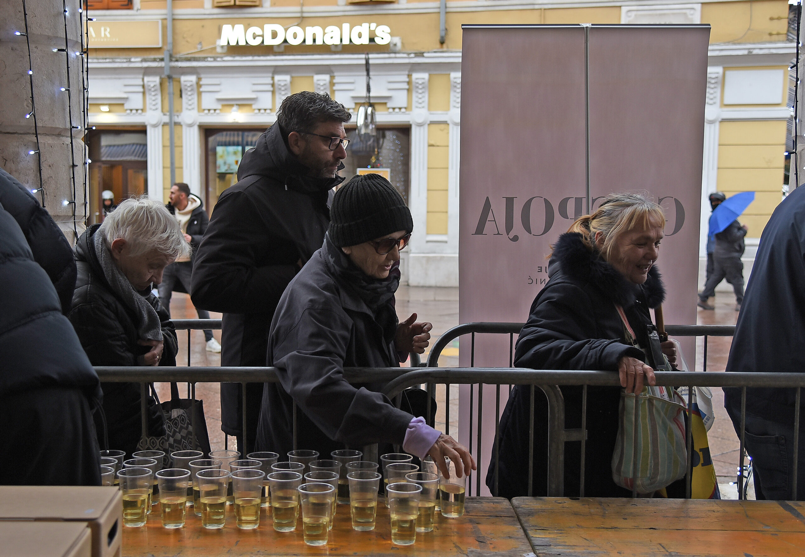 Ipak, nije sve tako sivo jer je Riječanima ovo prilika da se vide, podruže i nasmiju sa starim znancima. Dobrim željama, a pogotovo kada su uz marendu i čašicu vina, ne može na put stati niti riječka kiša.