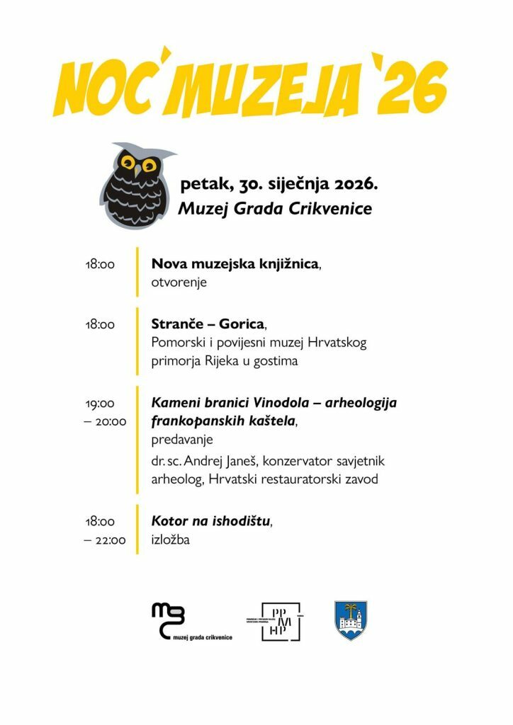 Muzej Grada Crikvenice i ove se godine pridružuje nacionalnoj manifestaciji Noć muzeja koja posljednjeg petka u siječnju okuplja posjetitelje u muzejskim i srodnim ustanovama.