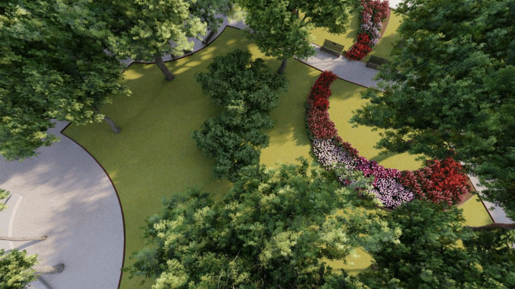 Projekt obuhvaća cjelovito krajobrazno uređenje prostora, stabilizaciju postojećeg visokog zelenila, sadnju novih autohtonih biljnih vrsta, modernizaciju pješačkih staza i boravišnih zona te unapređenje sustava odvodnje