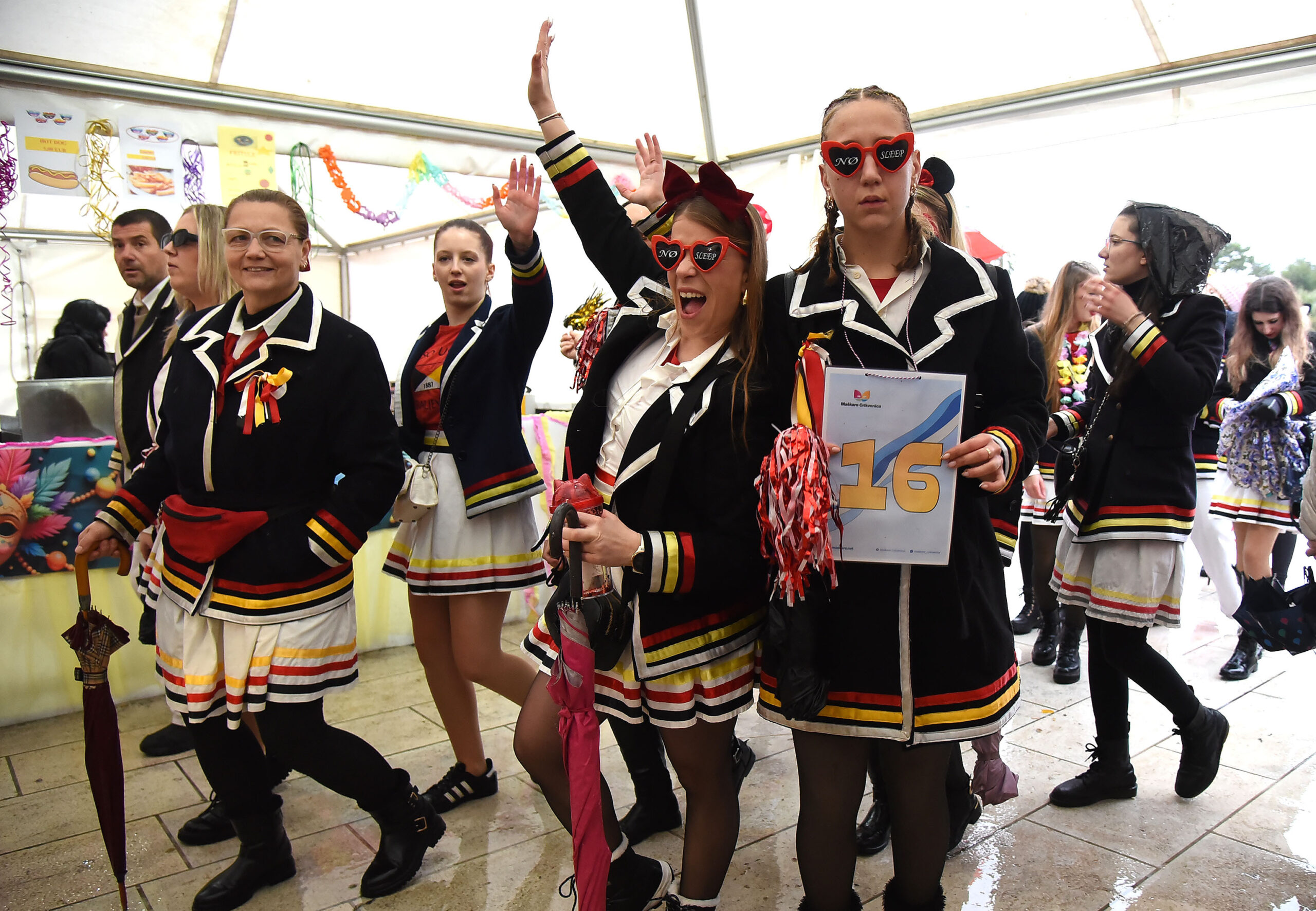 Povorka je zbog kiše prebačena u maškarani šator u središtu grada, koji je još dan ranije »zapalila« vrckava Maja Šuput.