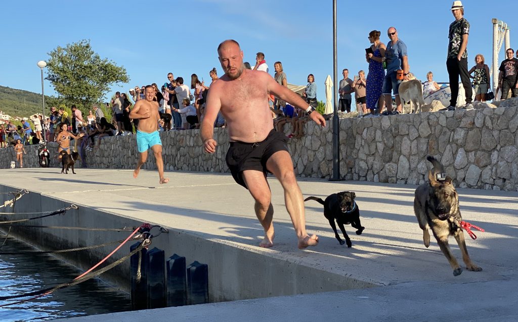 Trinaestero je vlasnika sa svojim ljubimcima tako s vrha rive skočilo u more te plivalo 200 metara do cilja smještenog na samom žalu plaže.