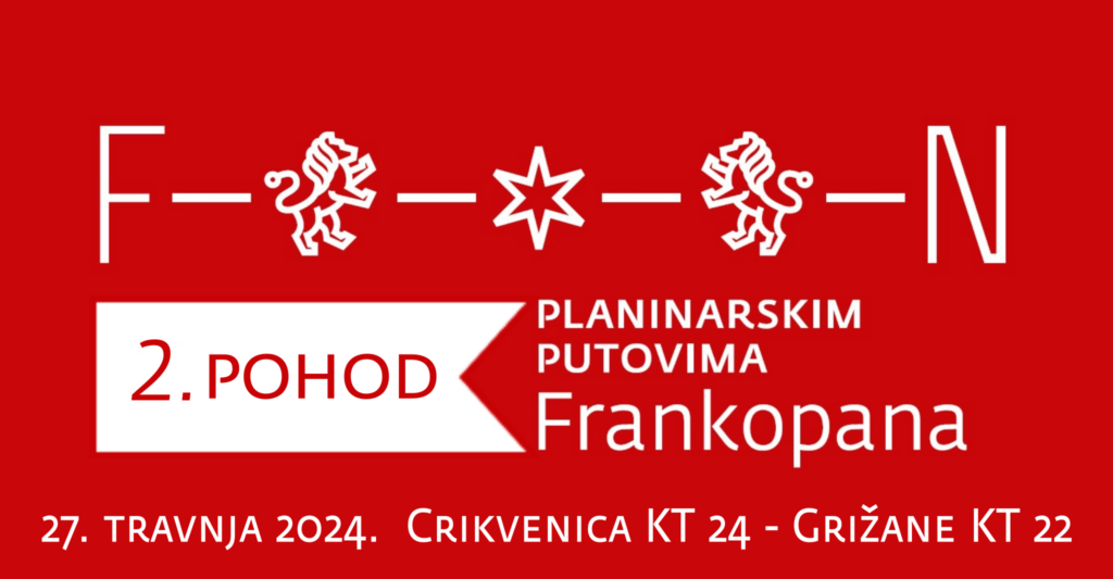 Planinarsko društvo Tuhobić u suradnji s Primorsko-goranskom županijom i ovogodišnjim sudomaćinima – TZ Grada Crikvenice i TZ Općine Vinodolske općine, organizira “2. planinarski pohod obilaznicom Planinarskim putovima Frankopana (PPF)” u subotu, 27. travnja 2024., s početkom okupljanja od 8.30 h i startom pohoda u 9.30 h iz Crikvenice (ispred hotela Kaštel).