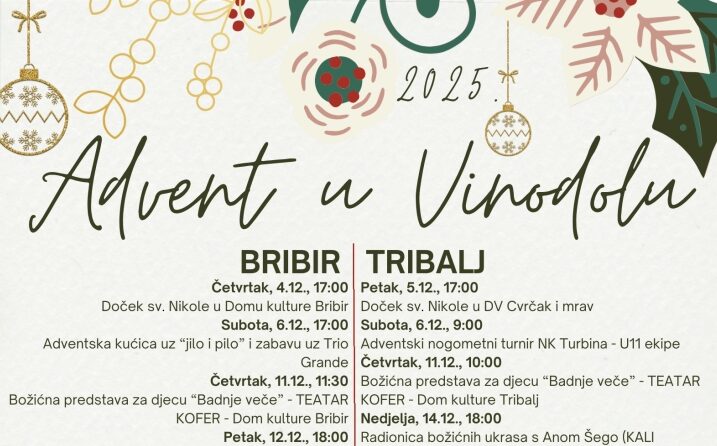 Vinodol će i ove godine zasjati u posebnom blagdanskom ruhu kroz manifestaciju Advent u Vinodolu 2025., koja tijekom prosinca donosi bogat program događanja u Bribiru, Tribalju, Grižanama i Driveniku.