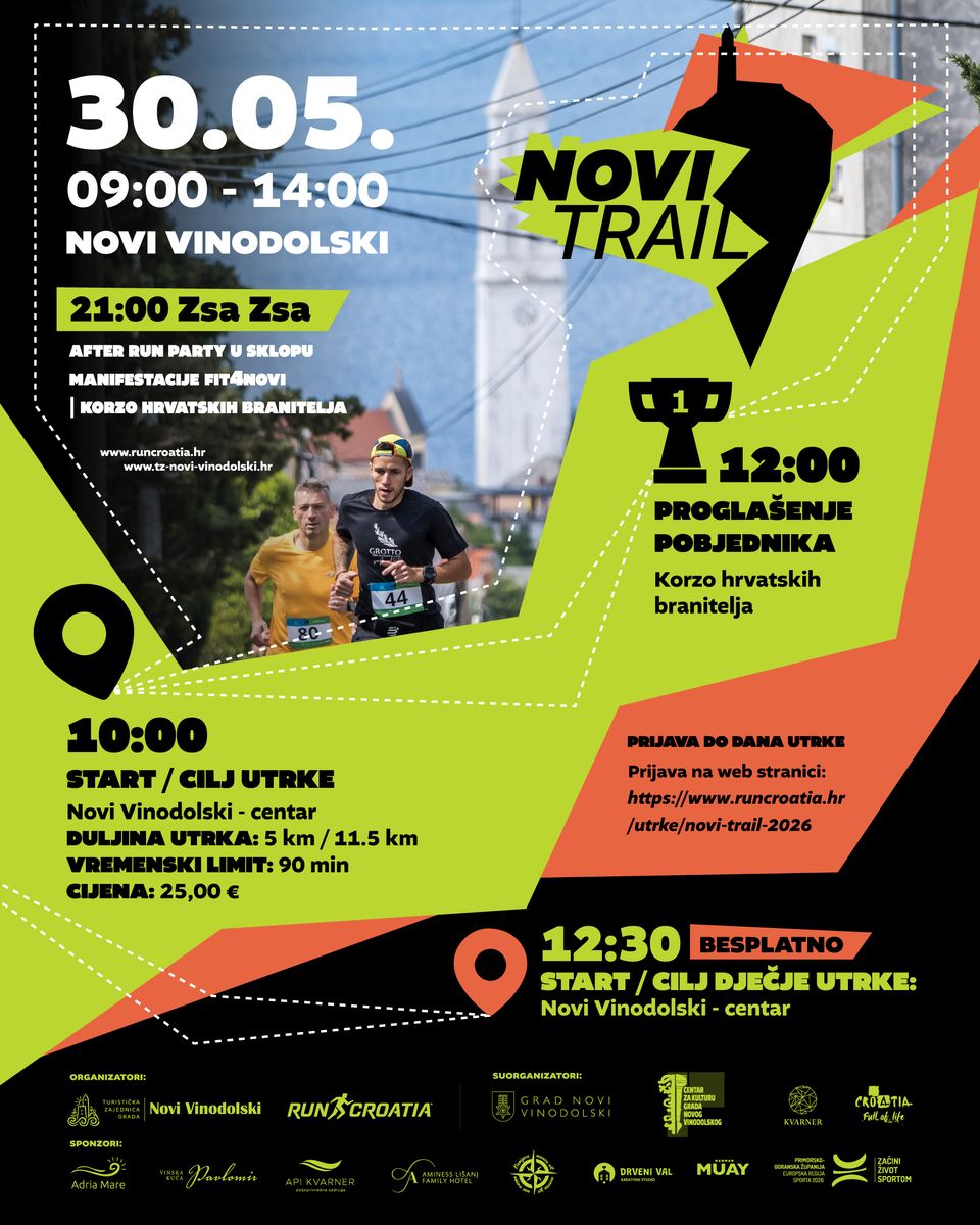 NOVI VINODOLSKI – U sklopu manifestacije FIT4NOVI, koja slavi sport, kretanje i zdrav način života, i ove će se godine održati sve popularniji Novi trail – utrka koja iz godine u godinu okuplja sve veći broj zaljubljenika u trčanje iz cijele Hrvatske i regije.