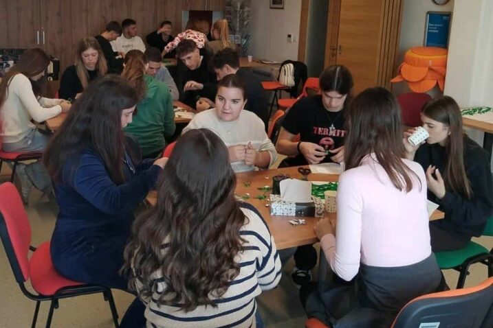 Nakon održanog predavanja osamnaest učenika je izrađivalo zelene vrpce kao simboličan znak