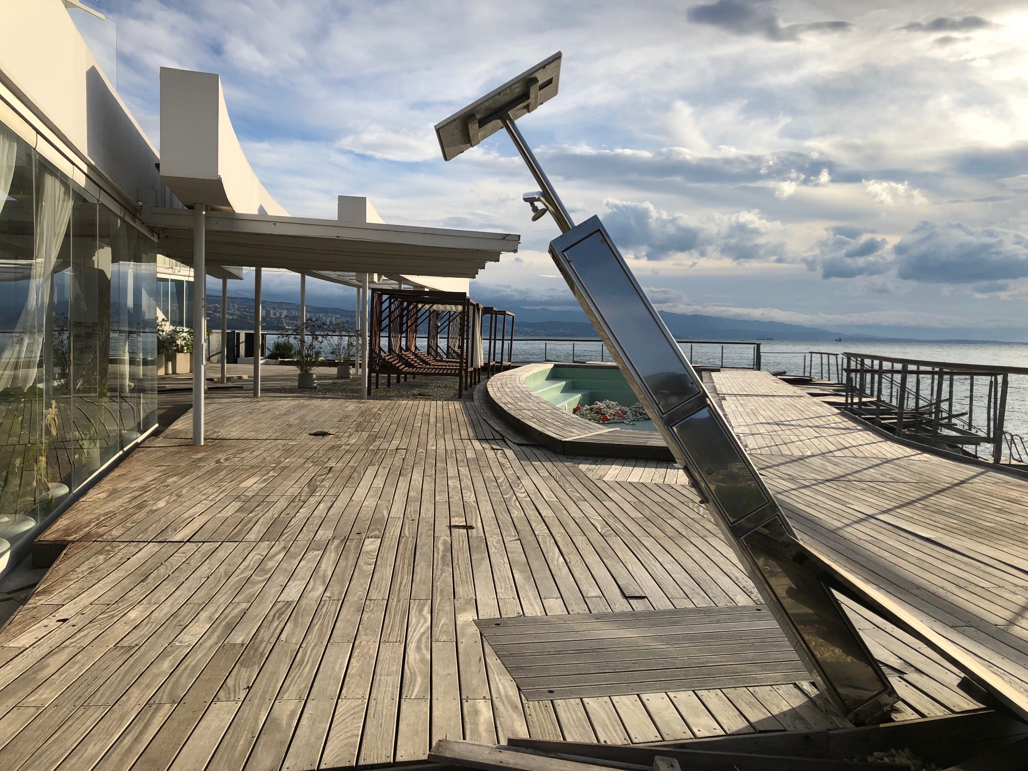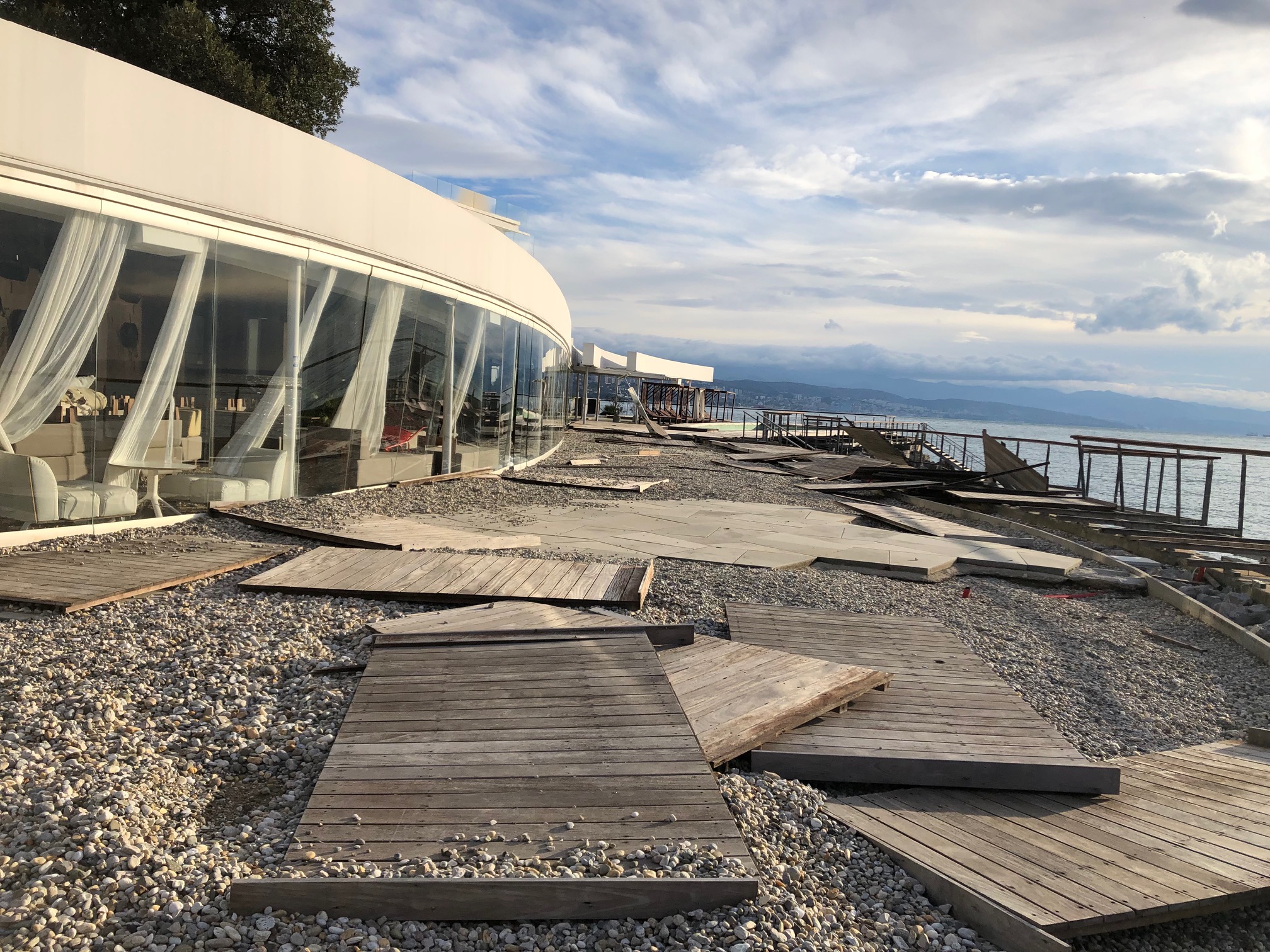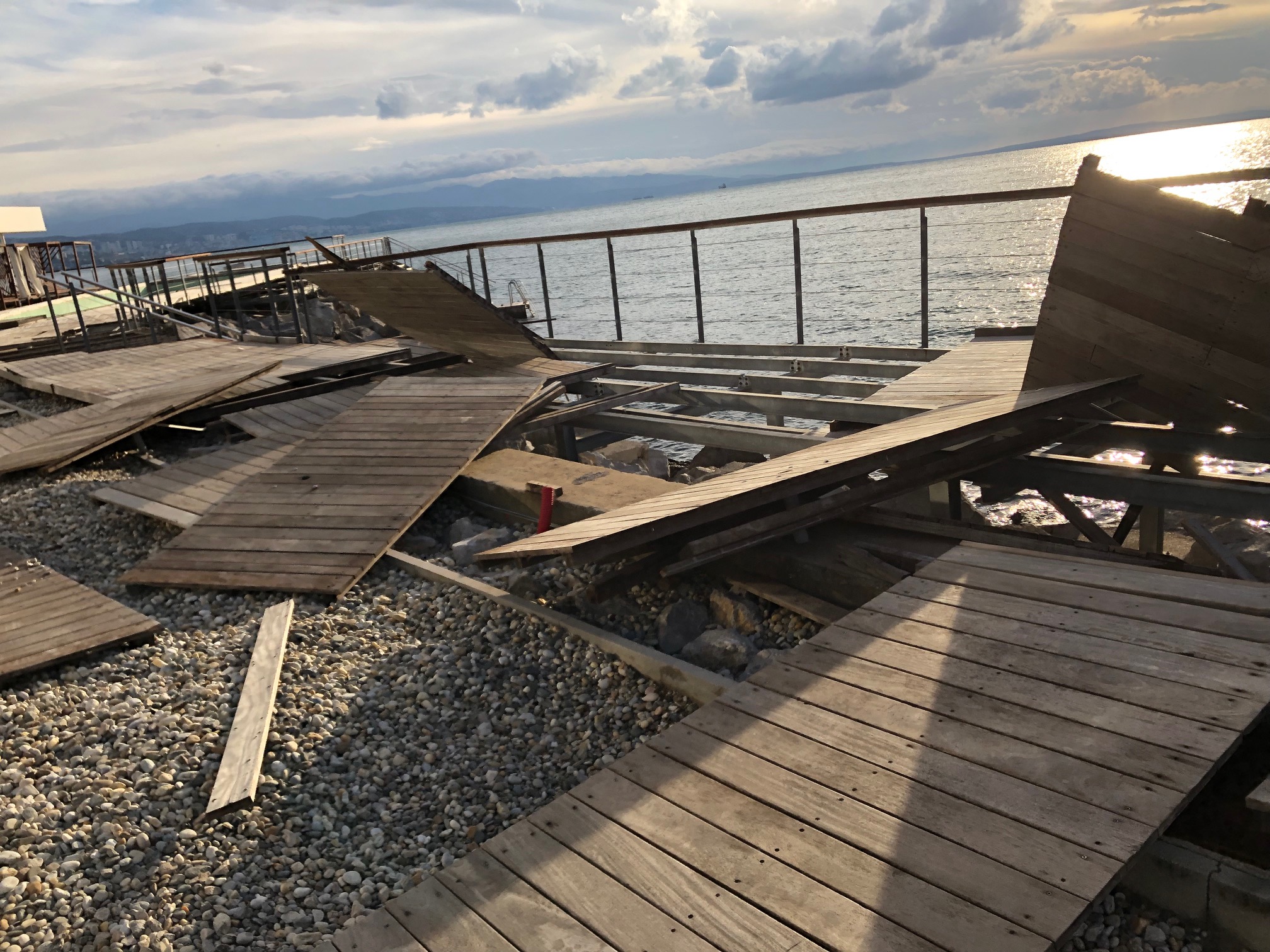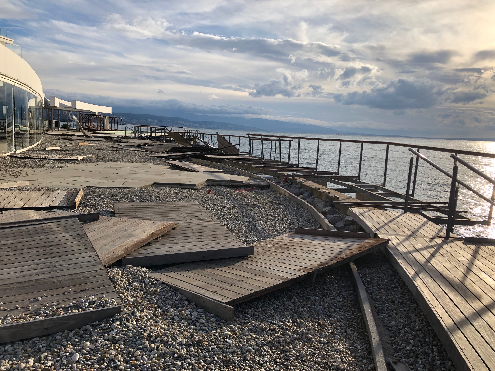 Plaža Lido Beach Opatija sada je prepuna razbacanih dasaka, jer je more razbilo drvene terasice nad stijenama te razbacalo šljunak kojeg sada ima i unutar tamošnjeg lokala. Oštećen i nakrivljen je i tuš, a prolaz uz samo more predstavlja opasnost za pješake.