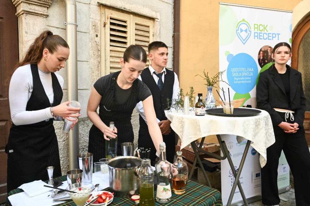 – Koristimo aromatiziranu votku u kojoj su šparuge stajale deset dana, liker od naranče, vrlo malo biske da bi dala aromu i na kraju šećerni sirup od šparuge. On se radi tako da se tvrdi dio šparuge skuha u vodi, u nju se stavi šećer, pa se ponovno kuha sa svježim vrhovima šparuga i ocijedi. Šparuge smo brali na obroncima Učke, recept smo osmislili zajedno s našim učenicima i prvi put smo ga predstavili, a reakcije posjetitelja na koktel su odlične, prezentirala je Sandra Viskić, profesorica Ugostiteljske škole.