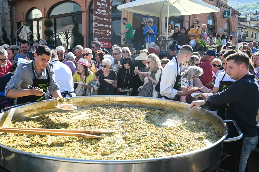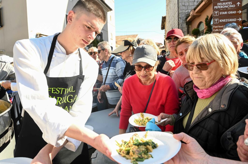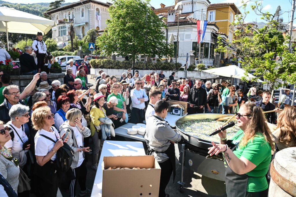 Na Trgu sv. Jurja u Lovranu podijeljeno je petsto porcija fritaje sa šparugama u koju su stali tisuću jaja, 30 kila lokalno ubranih šparuga i 20 kila pancete