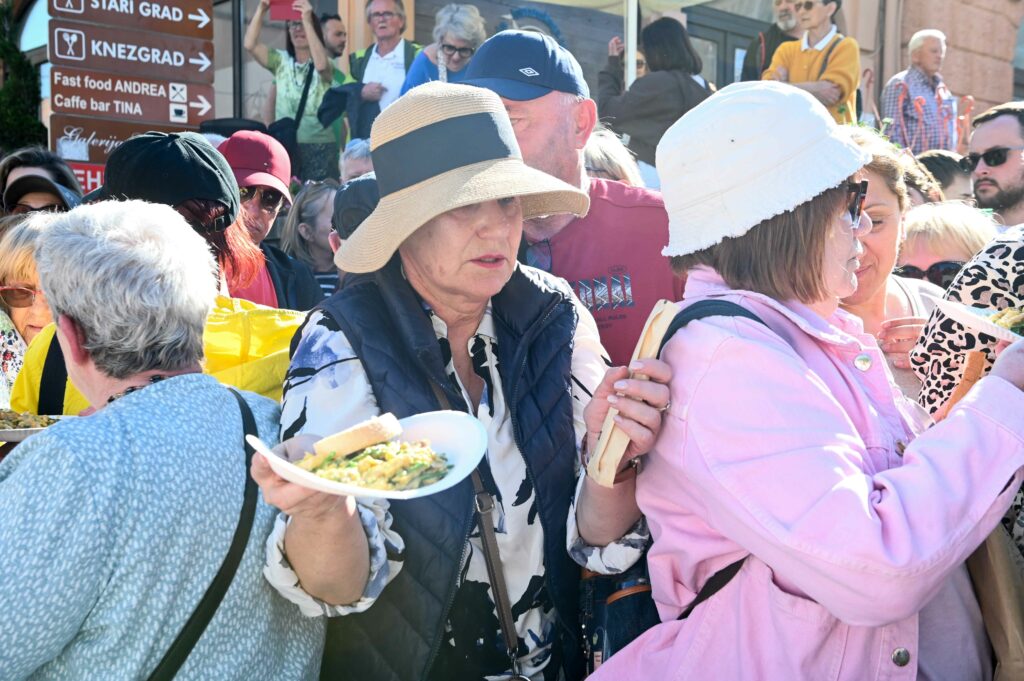 A kad je Puhački orkestar Lovran zasvirao svoju „Toronjeru”, svi u Lovranu, pogotovo oni koji su se privremeno i taktički sakrili u neki od okolnih hladovitih kantuna, znali su da je došao moment lova na jednu od ukupno 500 porcija koliko su ih učenici opatijske Ugostiteljske škole podijelili zainteresiranima.