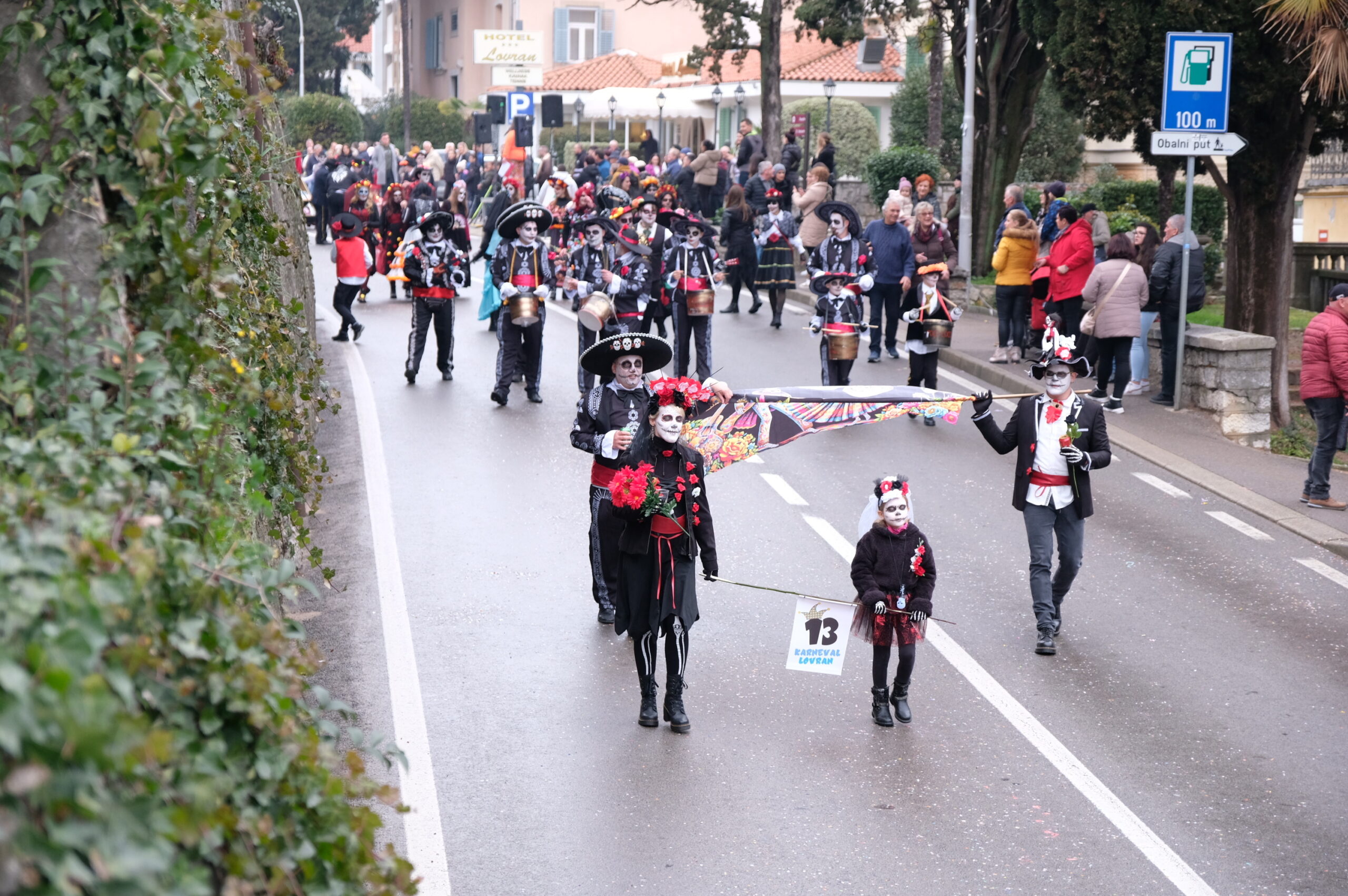 Organizatori iz Turističke zajednice općine Lovran potvrdili su da nitko od 46 grupa nije odustao od nastupa pa je glavnom lovranskom prometnicom, zatvorenom za promet vozila, prodefiliralo više od 1.000 maškarica i još oko 2.000 odraslih maškara. Već tradicionalno otvorenje povorke pripalo je Meštru i kraljici Riječkog karnevala, Opatijskim mažoretkinjama i Puhačkom orkestru Lovran, nakon kojih su na red došle maškarice iz dječjih vrtića. Ove godine Lovranska karnevalska povorka s pravom može nositi i naziv međunarodna jer su na njoj sudjelovale i tri grupe iz Slovenije.