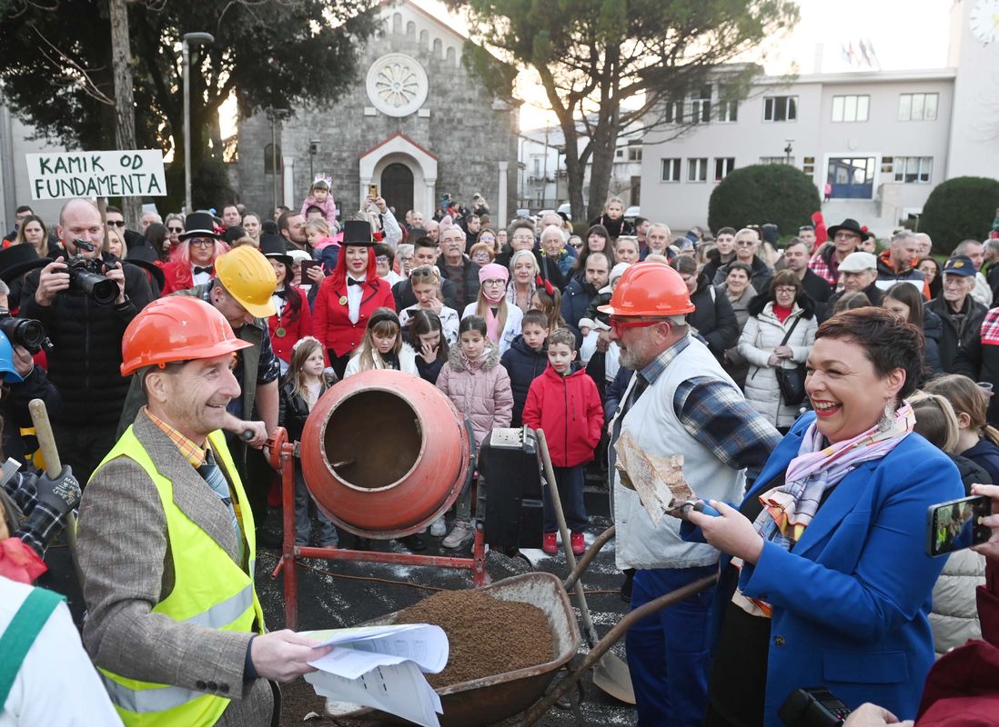 Maškarani igrokaz dočarao je svima poznati “kažin” koji nastaje kada se otvaraju gradilišta i svečano polaže “kamik od fundamenta” za nove investicije, a na Antonju je u društvu “građevinara” bila i matuljska načelnica Ingrid Debeuc koja se u odličnom raspoloženju i karnevalskom duhu “ćapala lopate”, odnosno špatule i svima poželjela da se do kraja karnevala dobro zabave.