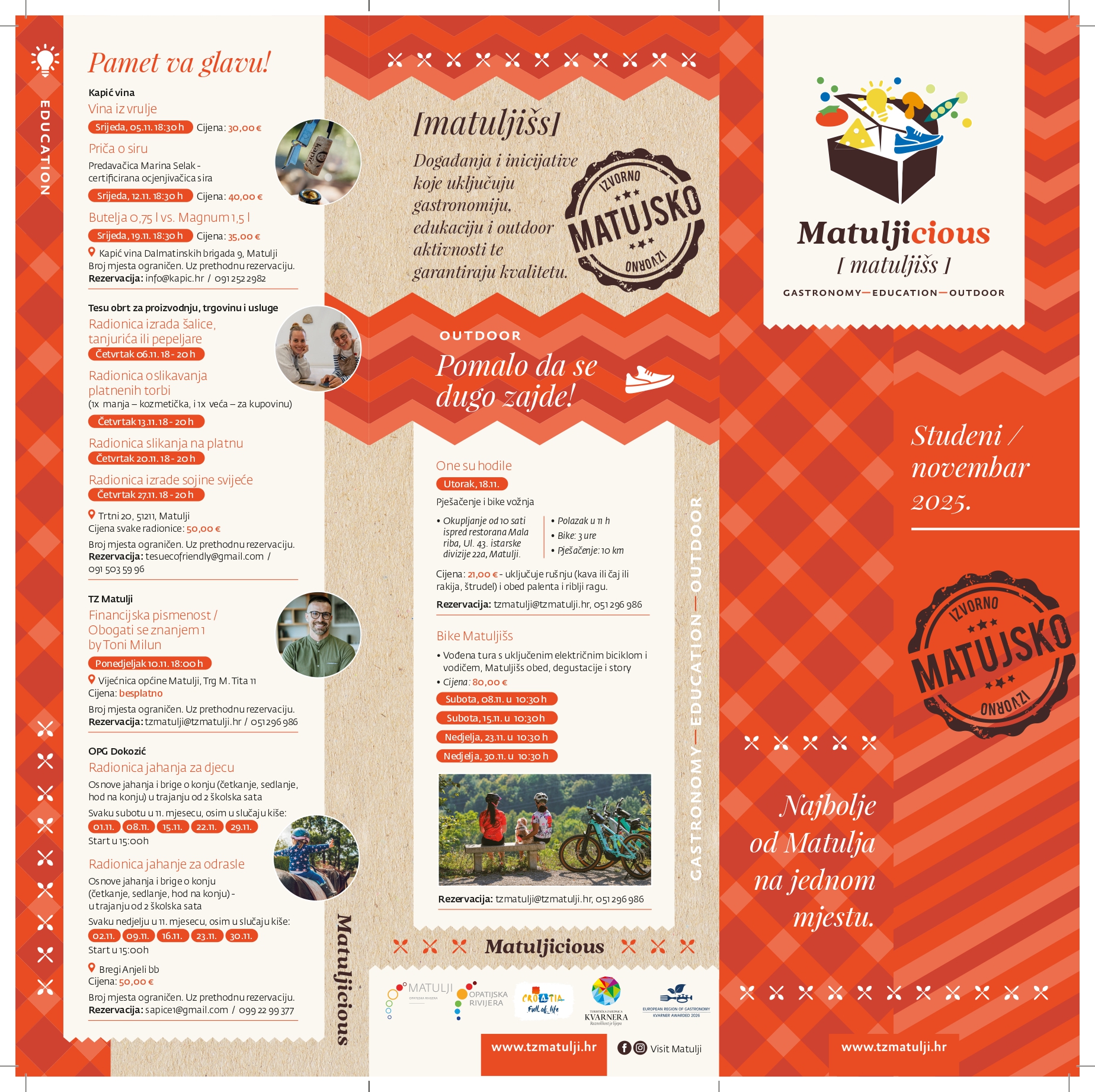 Još nekoliko dana i mjesec studeni će zavladati, pa je vrijeme i za novu, posebno sadržajnu turu sve poznatije gastronomske priredbe Matuljicious/Matuljišs.