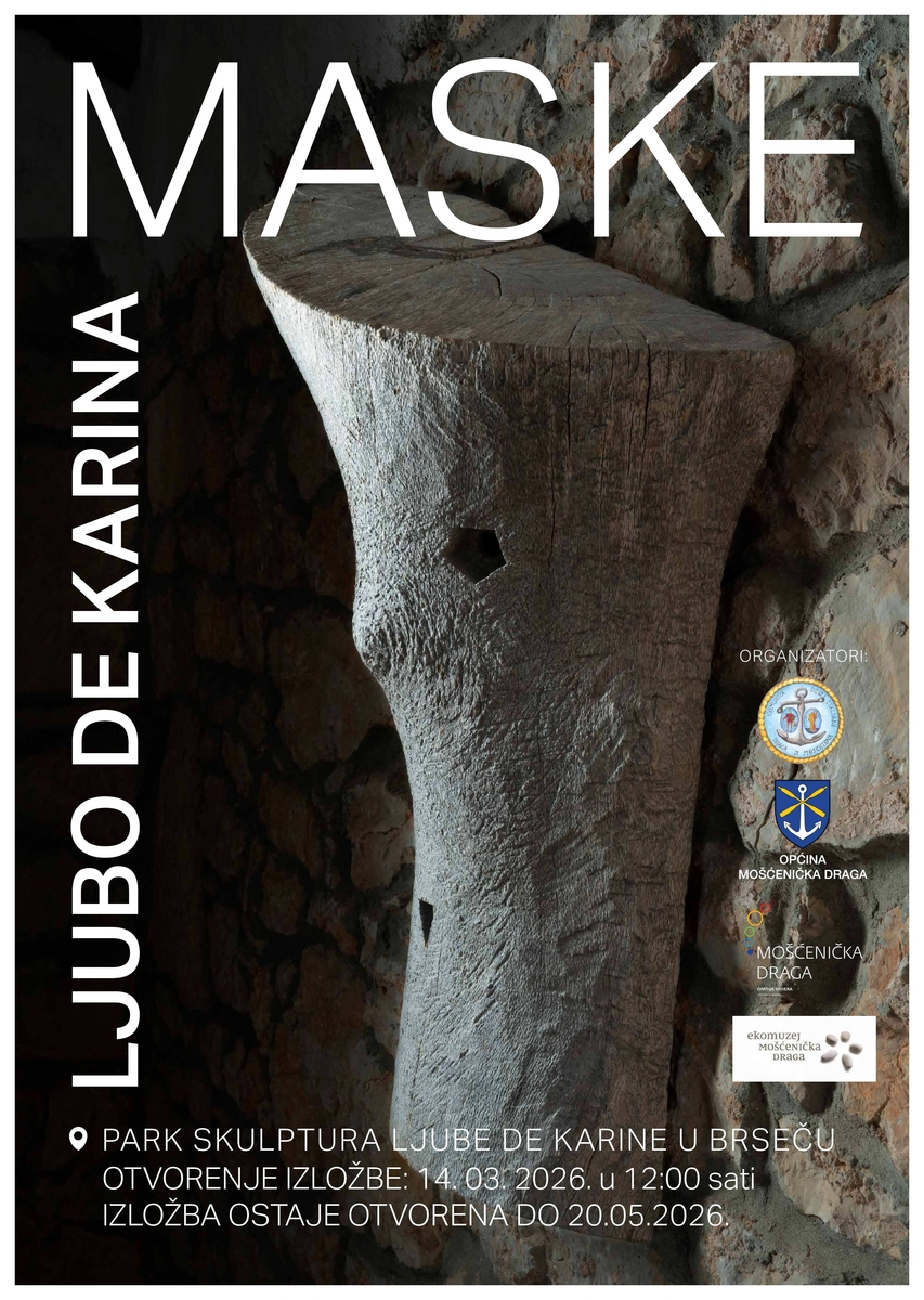 BRSEČ – Izložba pod nazivom »Maske« čiji je autor Ljubo de Karina bit će otvorena u njegovom Parku skulptura u Brseču u subotu 14. ožujka u 12 sati. Organizatori su Općina i TZO Mošćenička Draga te Ekomuzej i Zajednica Talijana iz Mošćeničke Drage, a ostat će otvorena do 20. svibnja.