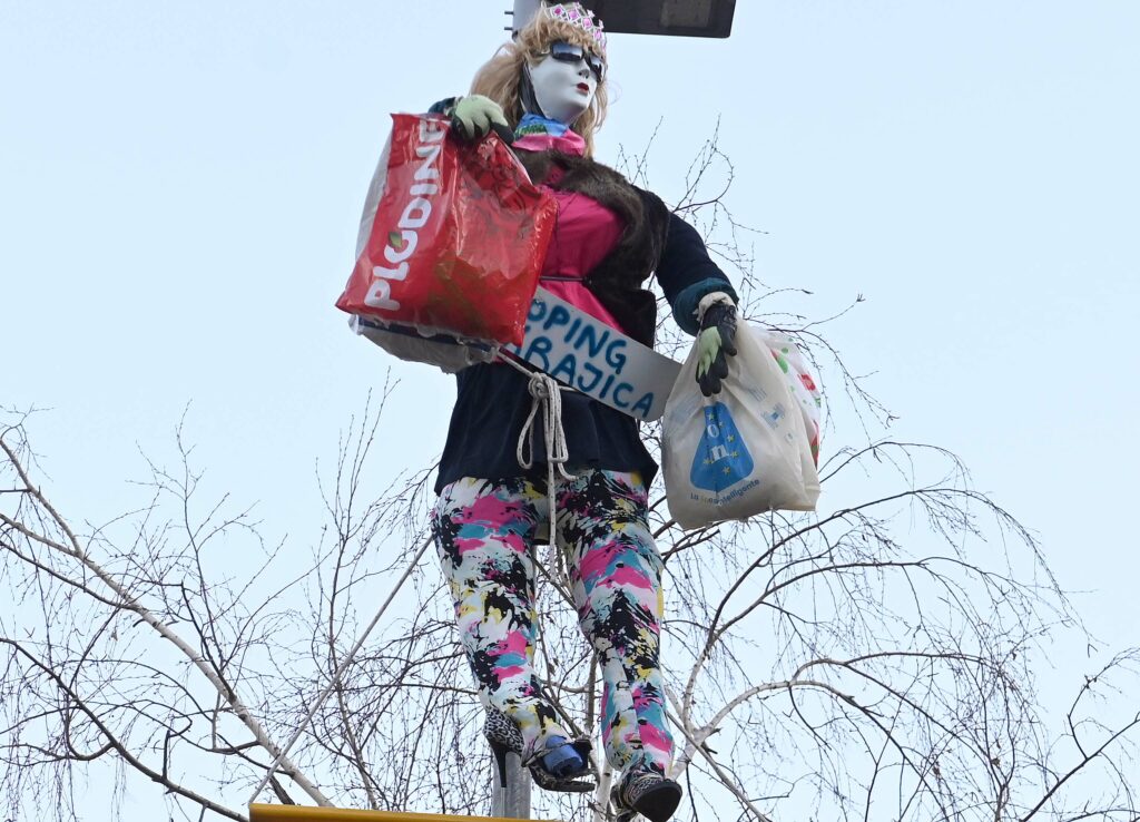 Podizanju Šoping krajice na pal prethodio je prigodni program u kojemu se moglo popiti »dec črenga, dec belega«, pojesti pokoji »ulenjak« i malo »zatancat« uz bend Jože Vešmašinov in prijatelji. Načelnik Općine Matulji Vedran Kinkela je s osmijehom na licu općinske ključeve predao u ruke maškara, ove godine je to Pusni odbor Matulji i sada njegov predsjednik Korado Dubrović ima priliku gotovo sedam tjedana držati »sve konce u rukama«.