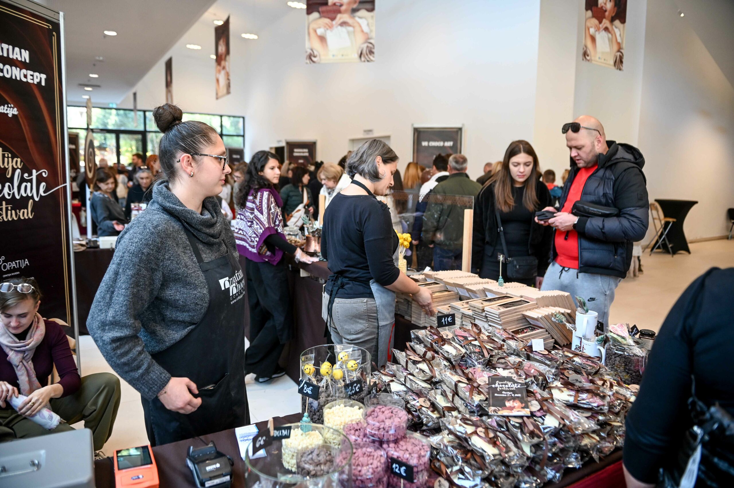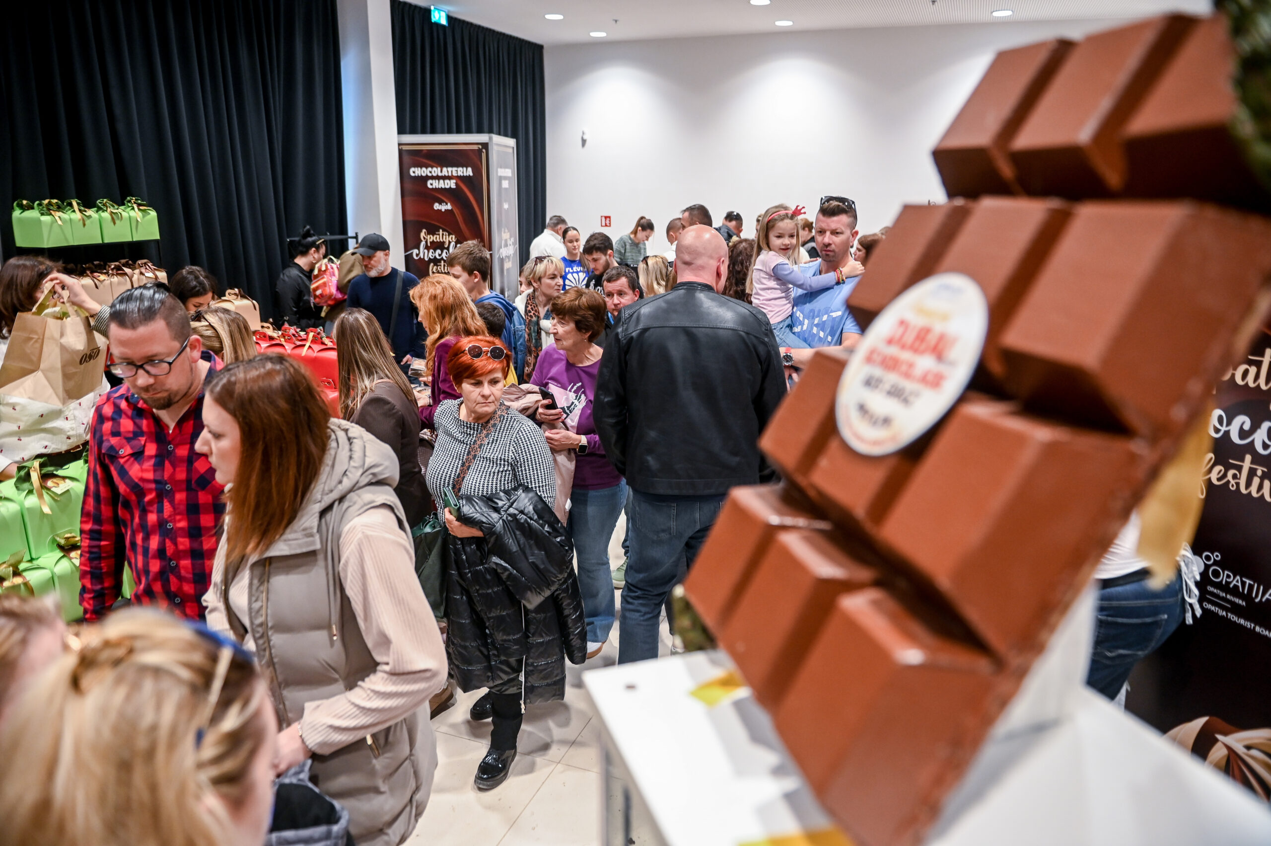 OPATIJA – Kulminacija 19. Festivala čokolade u Opatiji koji je porušio sve dosadašnje rekorde u posjećenosti, bila je danas točno u podne u Centru »Gervais«. Prezentirana je mnogobrojnoj publici, a zatim i degustirana atraktivna i jedinstvena čokoladna torta »Opatija – the Chocolate Town«, koja je spojila dva najpoznatija opatijska simbola – Lungomare i Djevojku s galebom. Zajedničkim snagama i uz veliku medijsku pažnju, ovu su tortu, za čiju se kreaciju od ideje do realizacije utrošilo tri mjeseca rada, razrezali opatijski gradonačelnik Fernando Kirigin, direktorica TZ-a grada Opatije Suzi Petričić, saborska zastupnica Ana Puž Kukuljan te autorice čokoladne atrakcije, artisan čokolatijerka i dizajnerica čokolade Marina Prijatelj i akademska kiparica Georgette Yvette Ponté. Program koji je pratila prava »rijeka čokoholičara« moderirala je Alida Domijan iz opatijskog TZ-a čija je ekipa tijekom nezaboravnog produženog čokovikenda imala pune ruke posla.