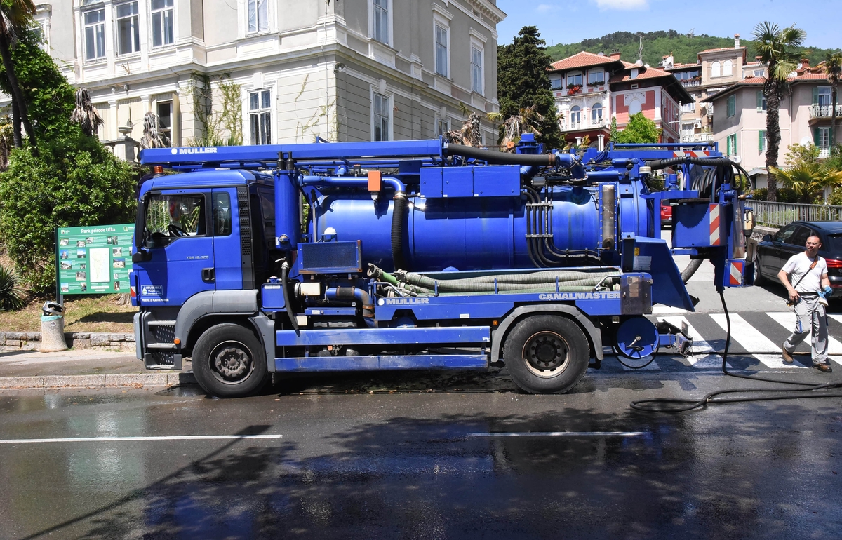 Ekipa iz Liburnijskih voda je zbog neodgovornih pojedinaca stoga danas imala uz svoj redovni posao još i zadatak što prije zaključiti hitnu intervenciju, odčepiti odvodni kanal i temeljito oprati prometnicu i riješiti Opatiju neugodnih mirisa u što kraćem roku.
