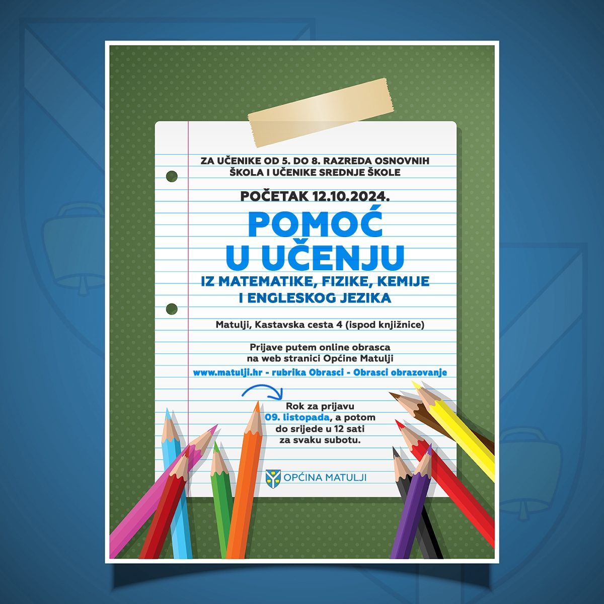 – Program Pomoć u učenju – SOS učenje tijekom prethodne godine koristilo je oko 60 učenika osnovnih i srednjih škola koji su redovitim dolascima na poduke uspješno savladali gradivo i time ostvarili bolje rezultate u nastavi. Svim korisnicima programa želimo uspješnu školsku godinu – poručili su iz Općine Matulji.