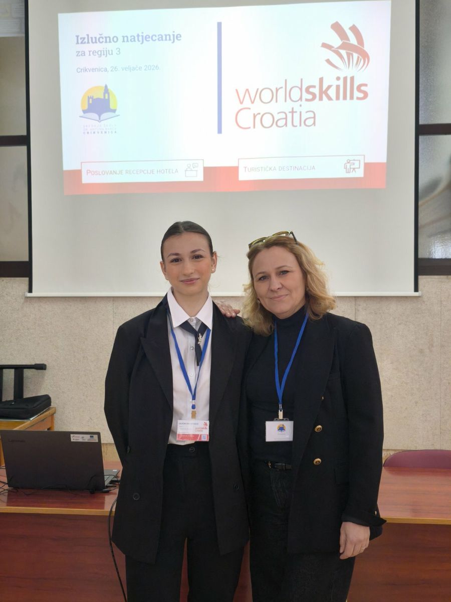 Na natjecanju u Crikvenici u disciplini Poslovanje recepcije hotela Gabriela Grulović iz 4.1 s mentoricom Majdom Bazzara Šimunić osvojila je 2.mjesto i plasirala se na Državno natjecanje WorldSkills 2026. U disciplini Turistička destinacija Marko Galoto iz 4.2 s mentoricom Ivonom Lazić osvojio je 4.mjesto.