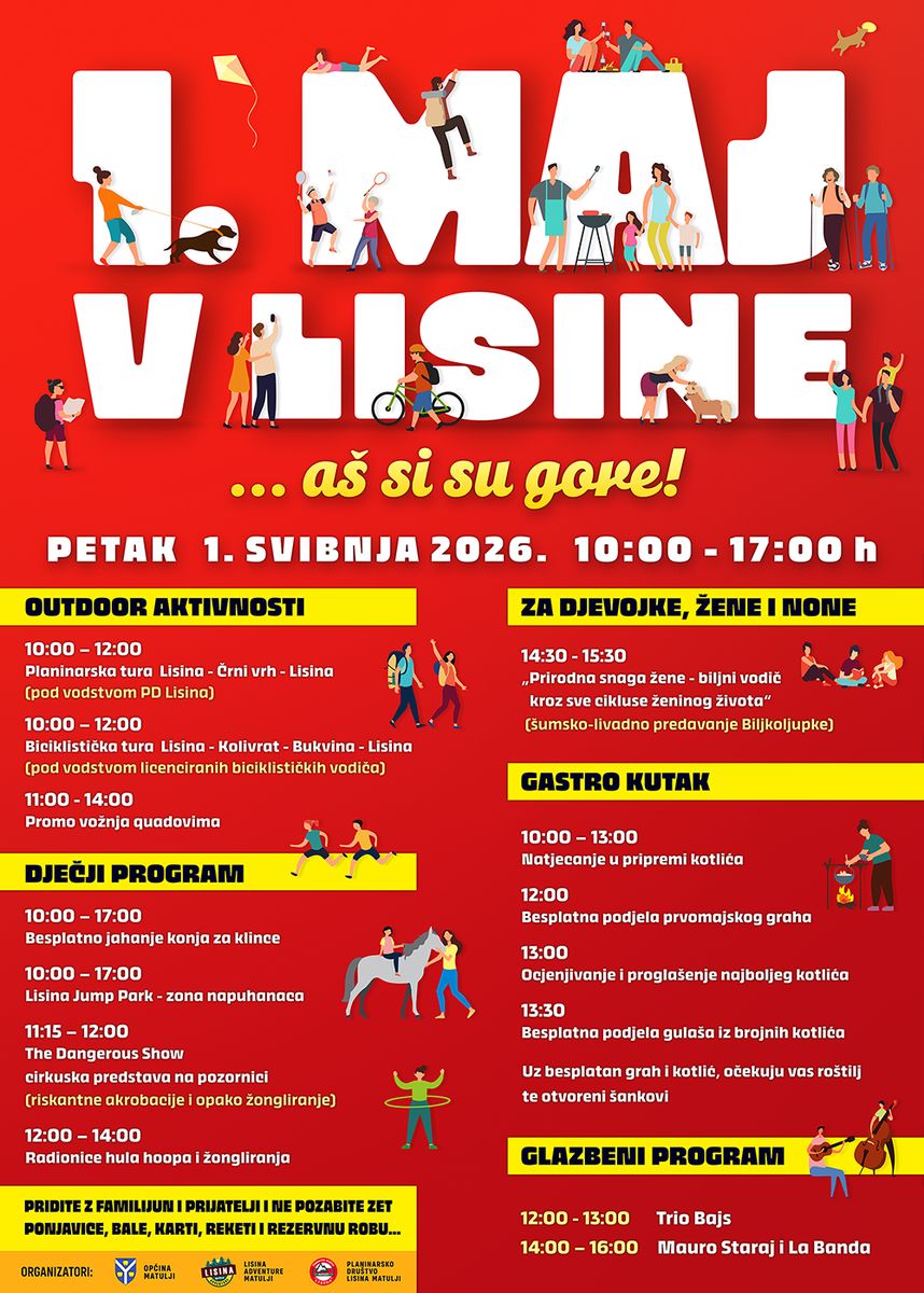 – Pozivamo svih da Praznik rada provedu aktivno, opušteno i u dobrom društvu, daleko od gradske vreve upravo na Lisni. Ponesite dekice, lopte, karte i frizbi, okupite obitelj i prijatelje i uživajte u danu ispunjenom prirodom, smijehom i dobrim vibracijama. Vidimo se na Lisini… aš si su gore – pozvali su iz Općine Matulji.