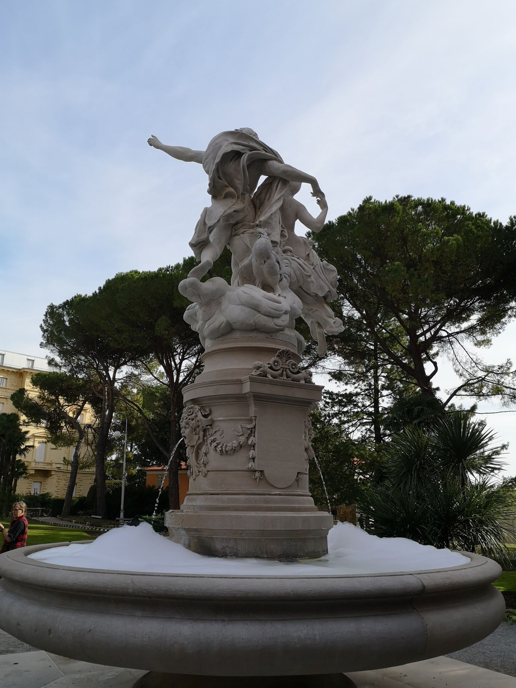 Uz ovaj »pjena party« oko fontane, zabilježili smo, nažalost, i oštećenje na dijelu ruba ove lijepe kamene fontane koja dominira parkom i u čiju se restauraciju, budući da je stara 132 godine, ulažu značajna sredstva i u Opatiji je jedan od najčešće fotografiranih motiva…