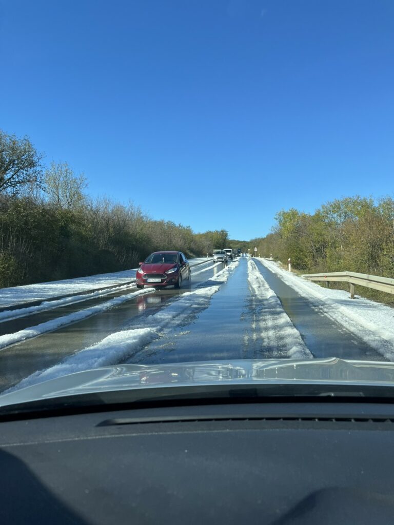 Na području između grada Krka i Malinske pala je tuča i to toliko obilna da ceste izgledaju kao da su fotografirane u nekom skijaškom odmaralištu, a ne na otoku.