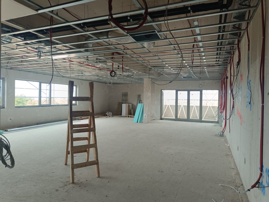 Proteklog mjeseca završene su hidro, strojarske i elektroinstalacije, a u suterenu su izrađeni zidovi od knaufa. Postavljeni su i nosači ventilirane fasade, čime su stvoreni preduvjeti za početak završnih vanjskih radova.