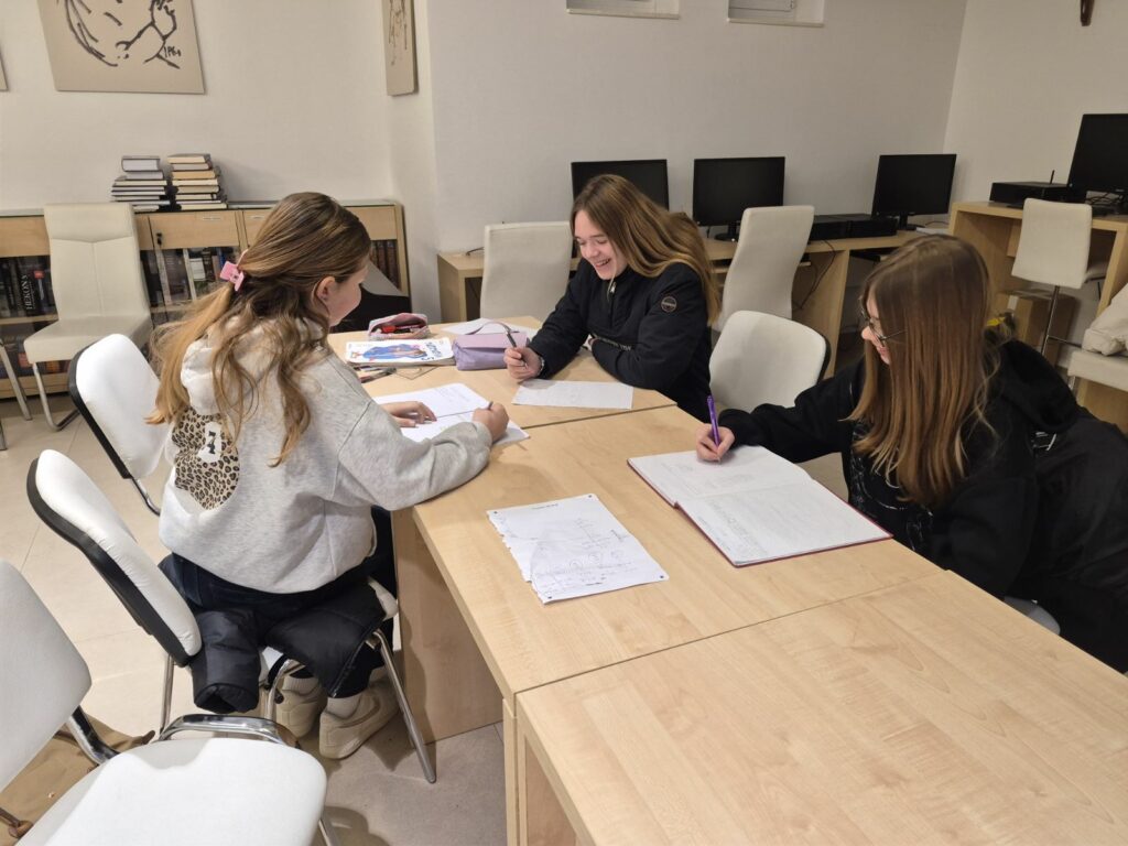 Osim kreativne i znanstvene radionice, cijeli tjedan u knjižnici protekao je i u znaku podrške u učenju. Učenici 5. i 6. razreda intenzivno su vježbali matematičke zadatke i pripremali se za nadolazeće ispite. Kroz uzajamno pomaganje, strpljenje i rad u malim skupinama, i zahtjevnije gradivo postalo je razumljivije i manje stresno.