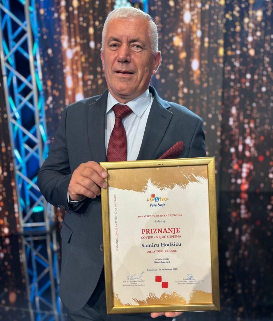 Na svečanoj dodjeli nagrada Hrvatske turističke zajednice »Čovjek – ključ uspjeha« održanoj u Dubrovniku u sklopu Dana hrvatskog turizma poznati krčki ugostiteljski radnik Samir Hodžić proglašen je konobarom godine. Veliko je to priznanje i nagrada za dugogodišnji rad u struci.