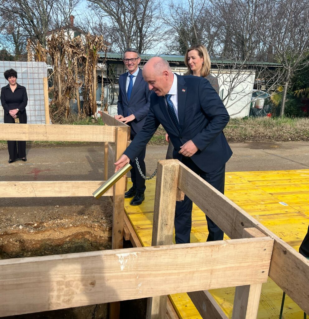 NJIVICE – Na parkiralištu Krčine u Njivicama svečanim polaganjem temeljnog kamena počela je izgradnja više stambene zgrade koja bi za godinu dana trebala primiti 12 mladih obitelji, kroz Program društveno poticane stanogradnje (POS). Prve lopate betona bacili su redom potpredsjednik Vlade Republike Hrvatske i ministar prostornoga uređenja, graditeljstva i državne imovine Branko Bačić, načelnica Općine Omišalj i saborska zastupnica Mirela Ahmetović te župan Primorsko-goranske županije Ivica Lukanović.