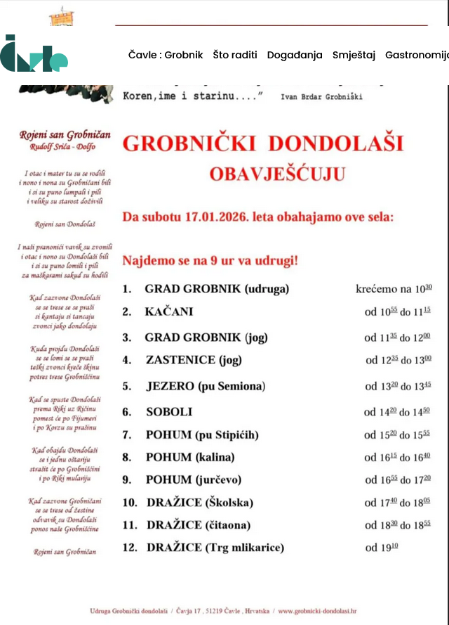 U subotu, 17. siječnja, u Gradu Grobniku opiraju se Mesopusni dani i diže se pust. Grobnički dondolaši obahajaju prema rasporedu, kojeg možete pronaći na POVEZNICI.