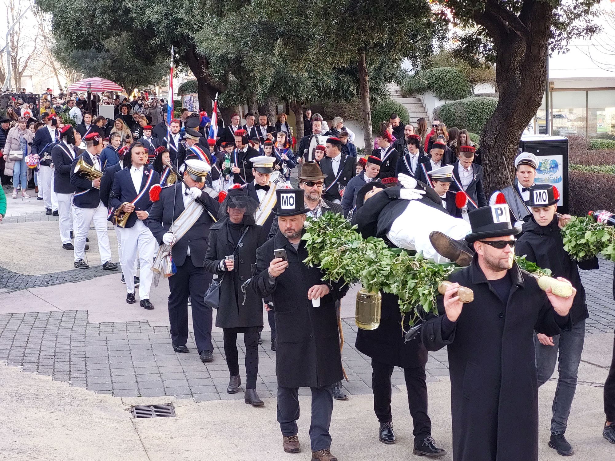 Žalosni novljanski puk je "priredil sprogod" mesopusta i na taj se način "oprostil" od brižnog Vladi-Mira, ali i malog mesopusta "Dvoranka"