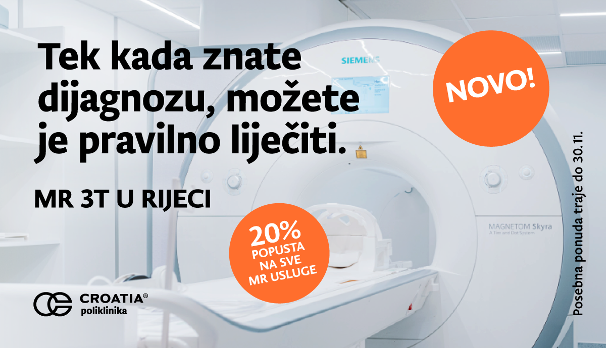 Posebna ponuda u Croatia Poliklinici u Rijeci!20 % popusta na SVE MR 3T pretrage do kraja studenog 2025.