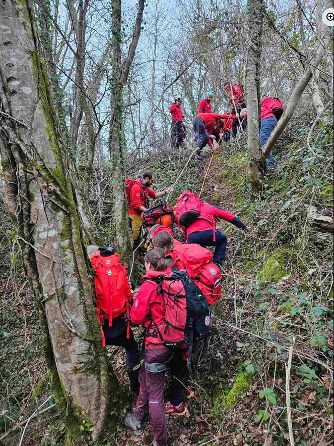 Unesrećeni po zahtjevnom terenu prenesen UT nosiljkom do terenskog vozila kojim se transport nastavio do najbliže cestovne prometnice gdje je predan djelatnicima Hitne medicinske službe.