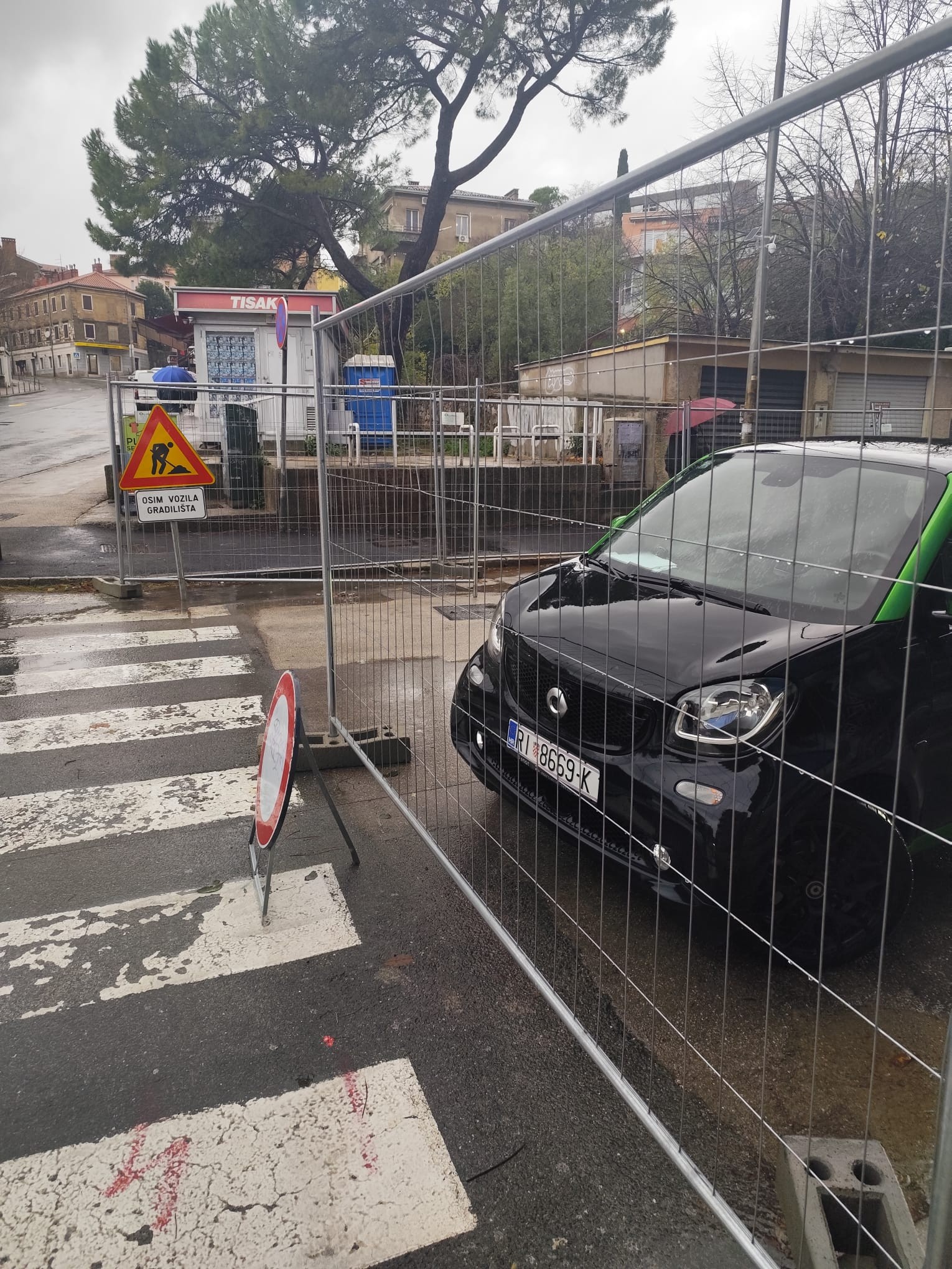 Riječ je o zoni aktivnih radova gdje je na snazi privremena regulacija prometa, uz postavljene ograde, znakove i signalizaciju koju vozači moraju poštivati, kažu u riječkom Gradskom prometnom centru.